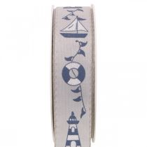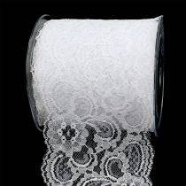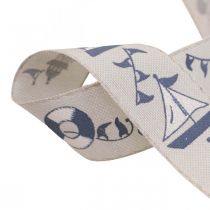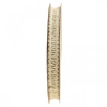 Jedes Organzaband mit Webkante in Creme ist auf eine Rolle aus Kunststoff gewickelt und hat eine Länge von etwa 50 Metern. Die Bänder bestehen jeweils zu 100% aus Polyester.