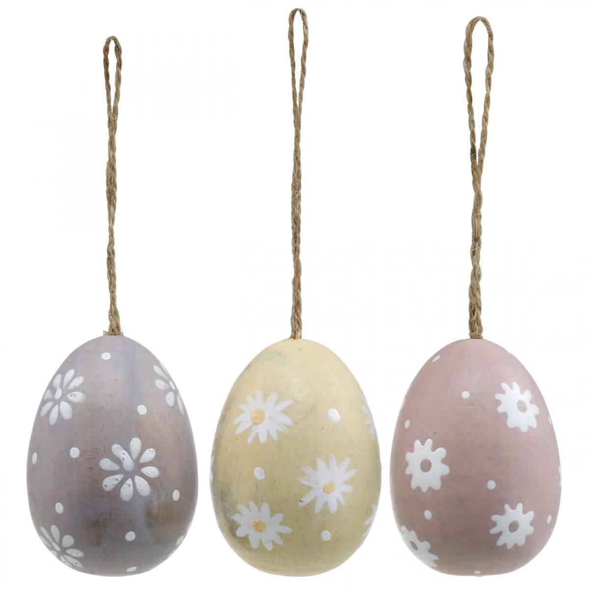 Produktname: Ostereier mit Blumen Deko zum Hängen Holz Ei Sortiert 7cm 3St