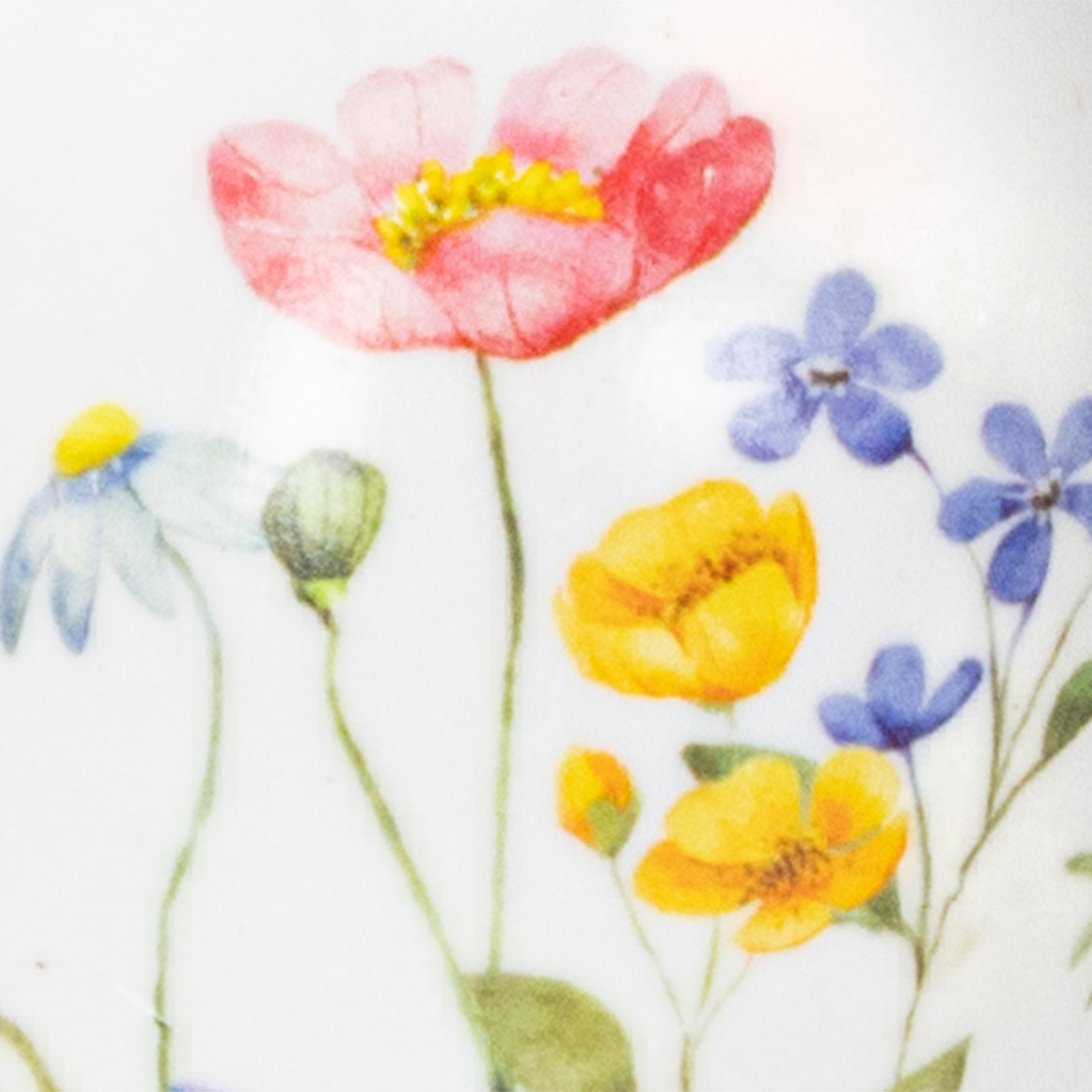 - Farbige Druckmotive: Frühlingsblumen und natürliche Gräser