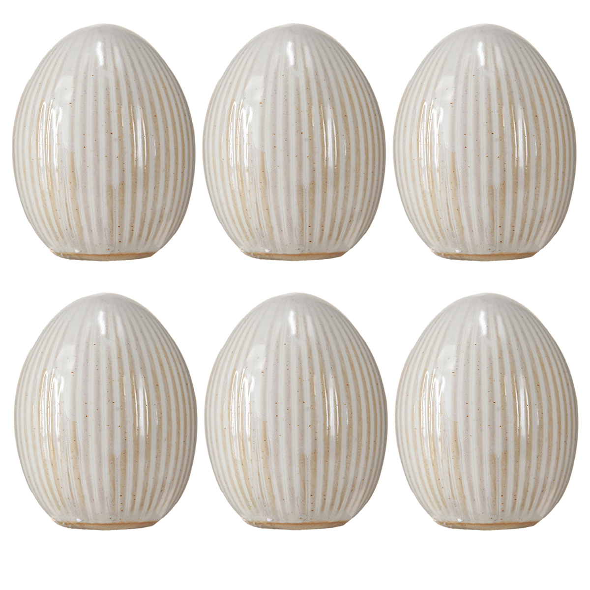 Ostereier Keramik Deko Ei mit Rillen Weißgrau 5×6cm 6St