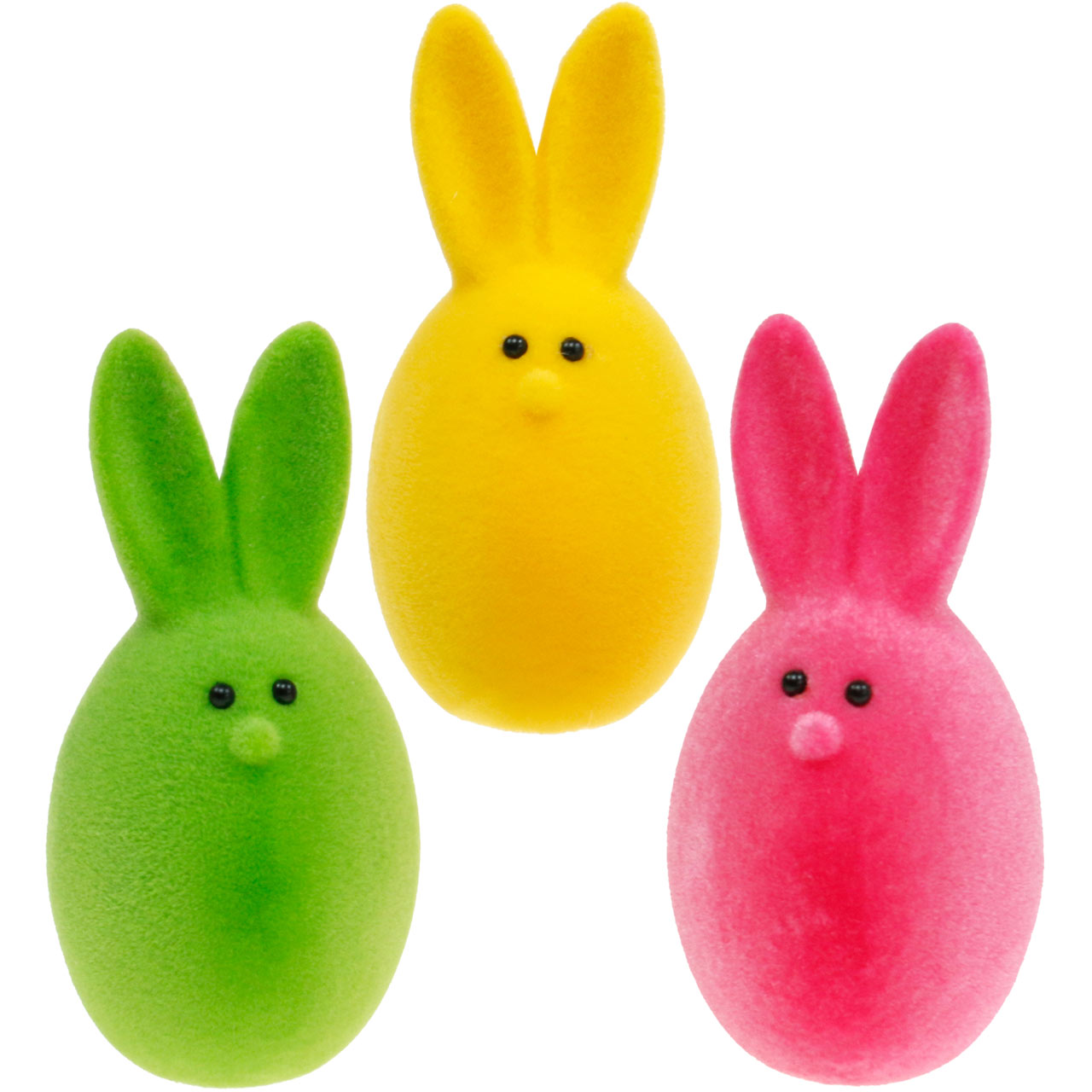 Ostereier-Mix mit Ohren, Haseneier beflockt, Osterdeko bunt 6 St