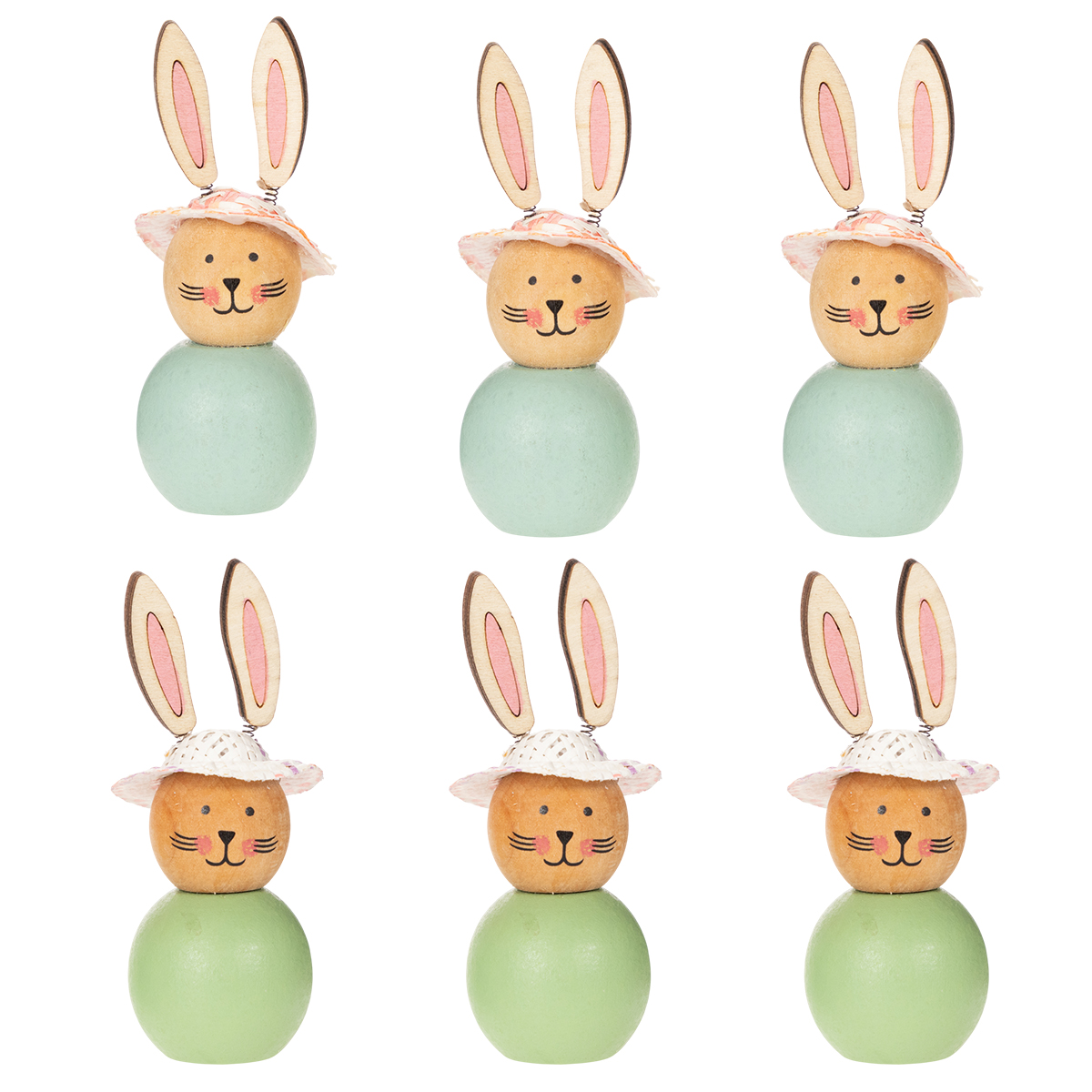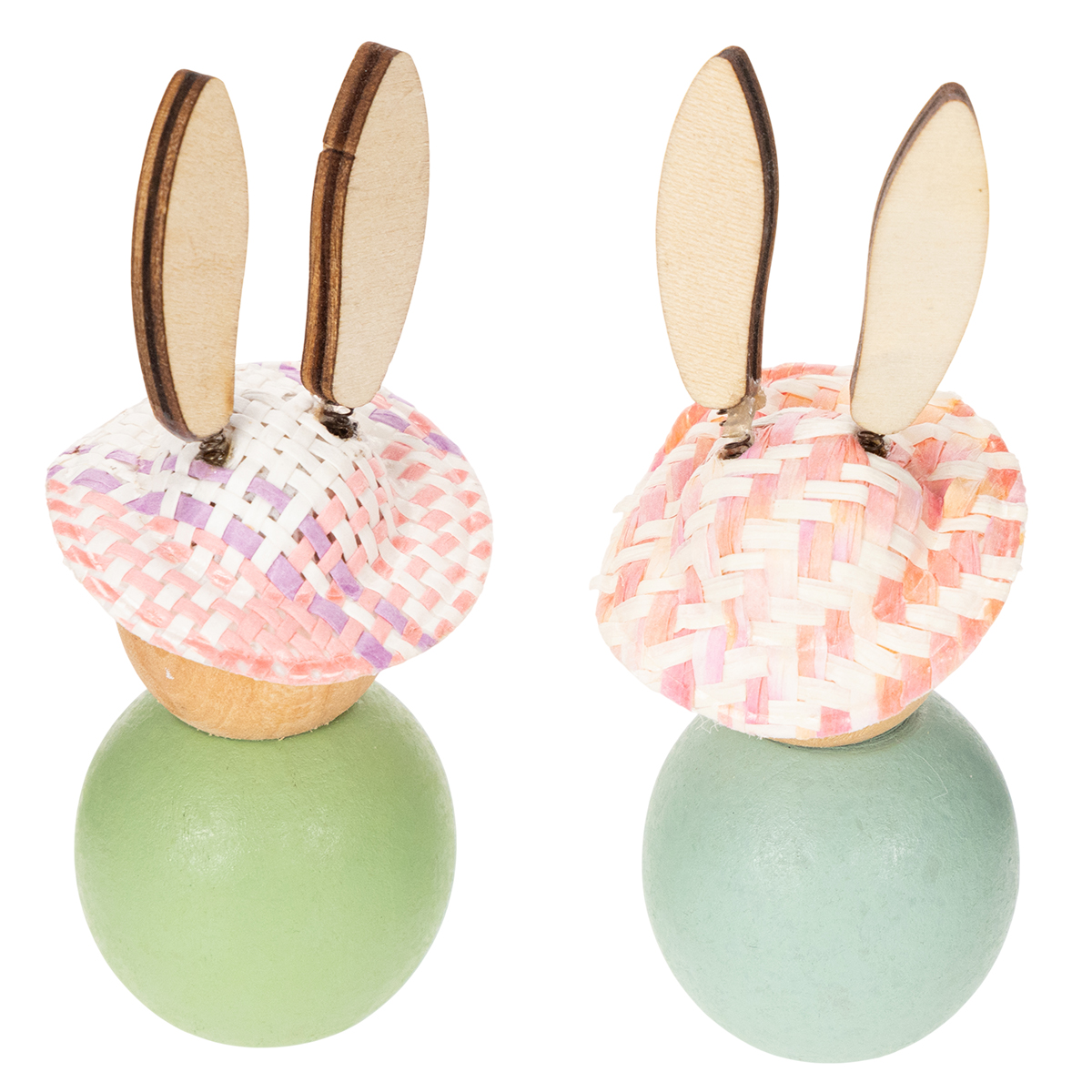 Diese Holzfiguren überzeugen durch ihren natürlichen Charme und ihre fröhliche Ausstrahlung: Klares Holz in Kombination mit dezenten Farbtönen in Grün und Mint trifft hier auf ein verspieltes Design. Besonders die rosaroten Hüte verleihen den Figuren einen stilvollen Vintage-Akzent. Jeder Hase ist etwa 9 cm hoch und bringt eine Prise Frühling in Ihr Heim. Die Ohren an Metallfedern sind nicht nur ein optisches Highlight, sondern verleihen der Figur ein lebendiges Detail, das die Blicke auf sich zieht.