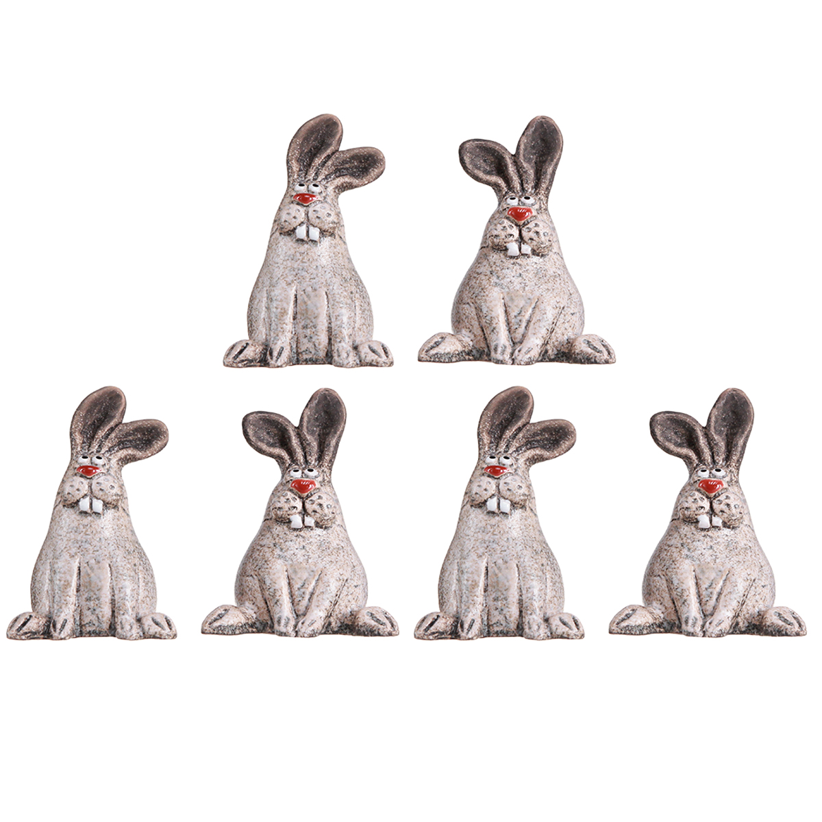 Produktname: Osterhase Keramik Lustiges Deko Kaninchen Braun H7cm 6 St
