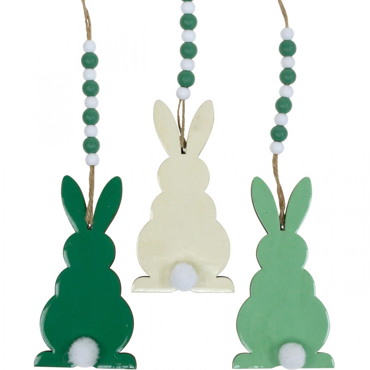 Produktname: Osterhasen zum Hängen, Frühlingsdeko, Anhänger, Deko-Hasen Grün, Weiß 3 St