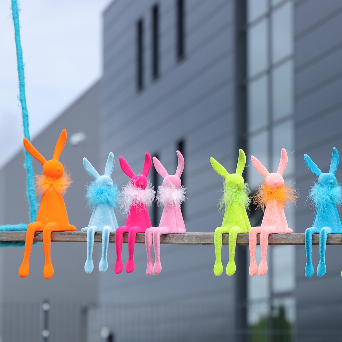 Was diese Kantenhocker-Osterhasen-Figuren ausmacht, ist ihr liebevoll gestaltetes Design. Sie sitzen lässig auf den Kanten von Möbelstücken, wobei ihre langen Beine charmant herabhängen. Das bringt Dynamik und Leichtigkeit in jede Dekoration. Kombinieren Sie die Figuren beispielsweise mit filigranen Osterzweigen, zarten Frühlingsblumen oder natürlichen Materialien wie Moos und Zweigen. Ob klassisch oder modern, diese Dekofigur fügt sich in jeden Stil mühelos ein. Und das Beste? Sie erhalten gleich zwei der süßen Deko-Hasen, perfekt zum Arrangieren!