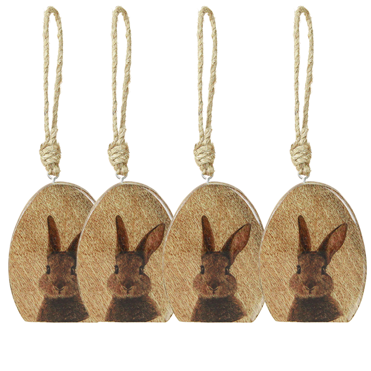 Produktname: Ostern Anhänger Hase im Ei Holz Jute Natur 8x10,5cm 4St