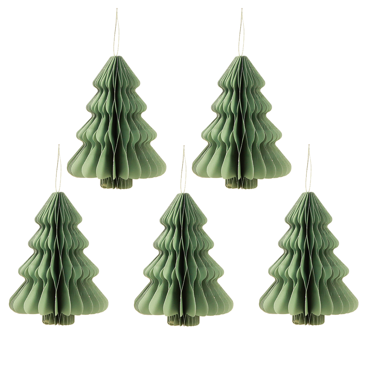 - 5 Papier-Weihnachtsbäumen in Mint mit silberfarbenem Glitter