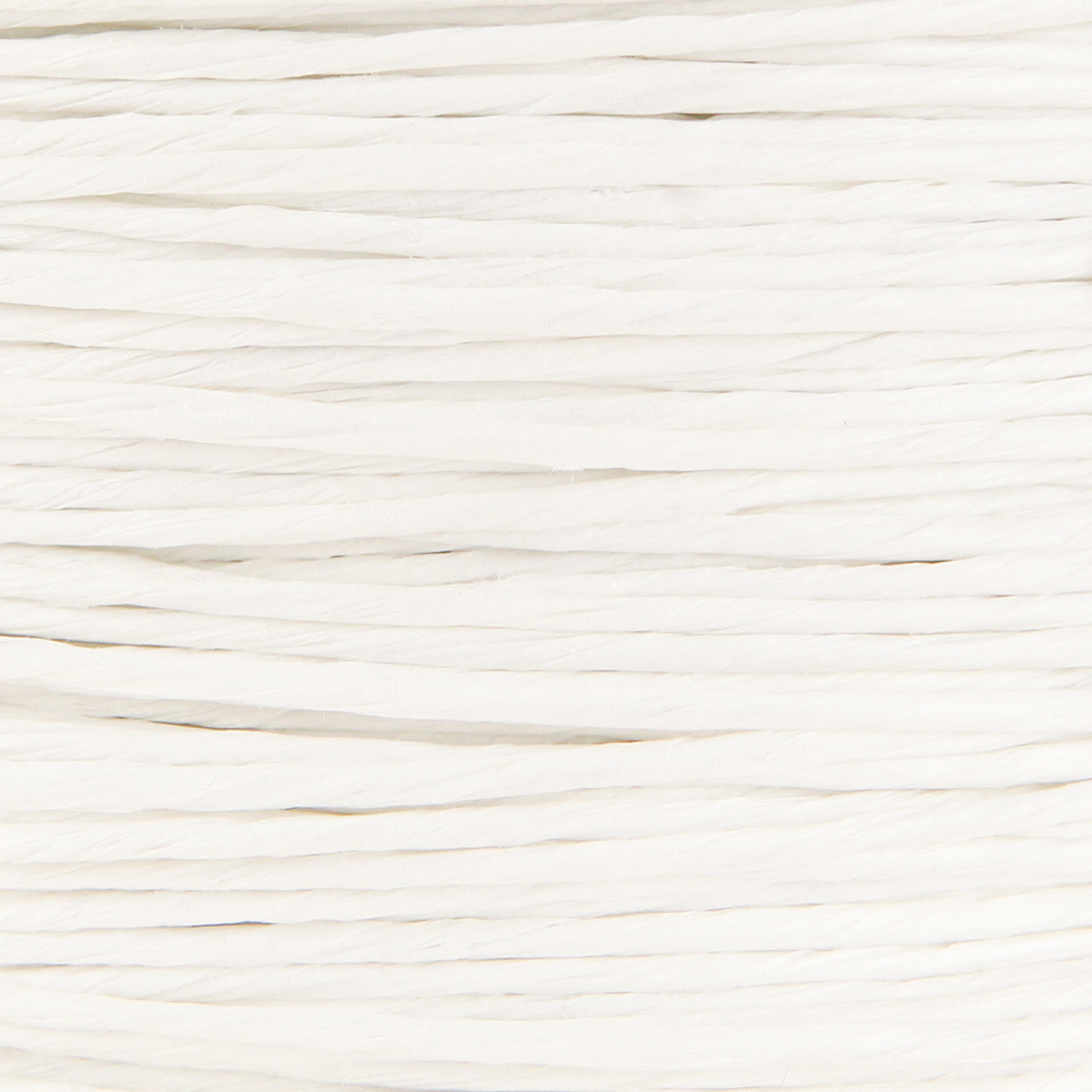 Der Papierdraht in Weiß ist auf eine stabile Kunststoffspule aufgewickelt und hat eine Länge von etwa 100 Metern. Der Draht hat mit dem Papier einen Durchmesser von etwa 2 Millimetern und lässt sich auch sehr leicht mit einem scharfen Gegenstand in kleine Stücke schneiden.