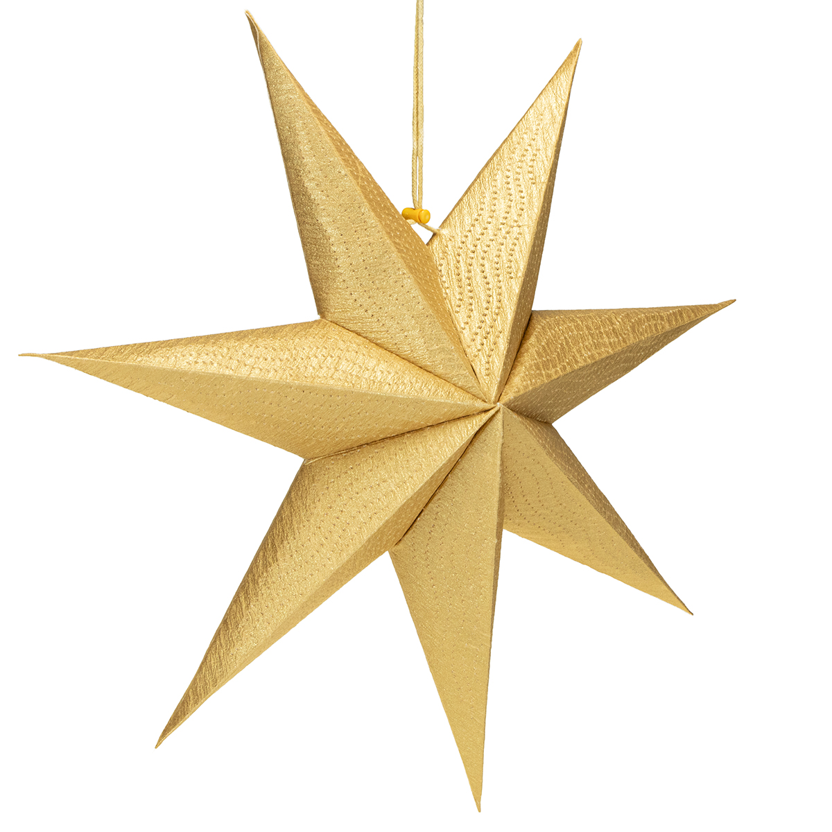 Der goldene Weihnachtsstern aus Papier ist nicht nur ein optisches Highlight, sondern auch bis ins Detail durchdacht. Mit seiner großzügigen Größe von 45 cm zieht er alle Blicke auf sich, bleibt aber trotzdem dezent und elegant. Die goldene Beschichtung schimmert wunderschön im Licht und verleiht jedem Raum eine edle Note. Kombiniert werden die Sterne mit einem praktischen Baumwollhänger inklusive Kordelstopper. Das macht das Aufhängen kinderleicht – ganz ohne komplizierte Befestigung. Dabei sind die Papiersterne für Beleuchtung geeignet. Stellen Sie sich das sanfte, warme Licht vor, das durch das goldene Papier scheint und die feinen Muster wortwörtlich ins richtige Licht rückt. Einfach zauberhaft!