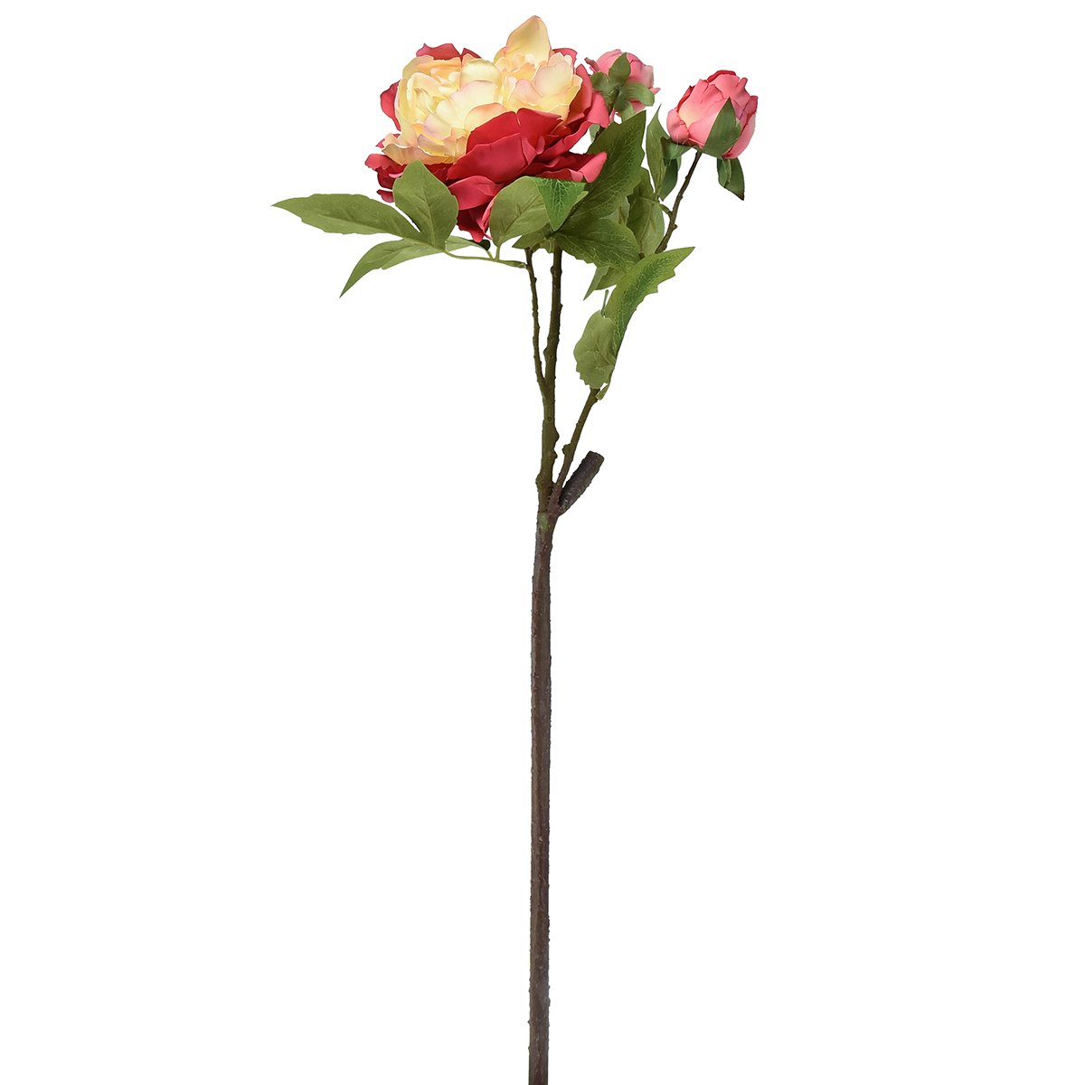 Die Seidenblume zeigt die Blüten in einem Spektrum von hellem Gelb bis hin zu dunklem Pink, was sie zu einem unverwechselbaren Highlight in jedem Raum macht. Der verholzte Stängel ergänzt das Gesamtbild und verschafft der Kunstblume eine stabile und markante Präsenz, sei es in einer Bodenvase oder als Tischdeko. Die Pfingstrosen-Deko besticht durch eine Kombination aus einer offenen Blüte, einer halb geschlossenen Blüte und einer Knospe und bringt die Vielfalt der Natur in Ihr Zuhause.
