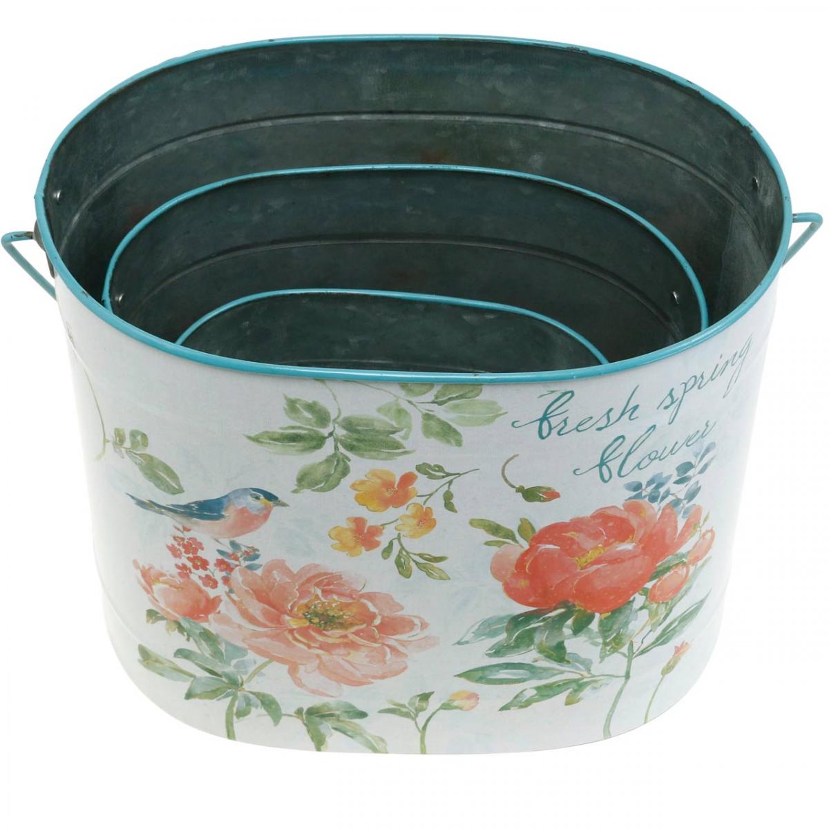Pflanzeimer oval Vintage Frühlingsdeko Pflanzkübel Metall 26/22/17cm 3er-Set