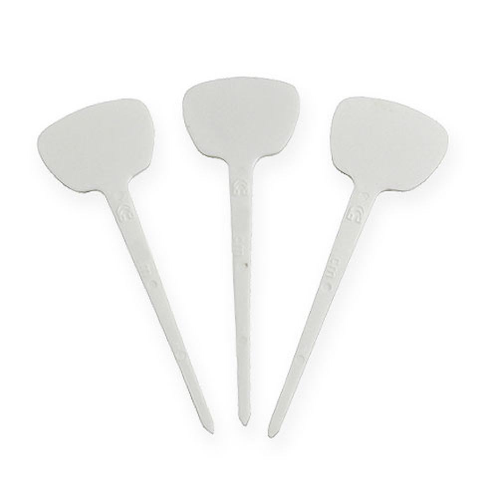 Die Blumen-Steckschilder bestehen aus leichtem und gleichzeitig stabilem Kunststoff. So ist das Pflanzzubehör wetterfest; benutzen Sie Klebeetiketten und Sie können die kleinen Schilder auch immer wieder verwenden. In einem Botanischen Garten können Sie mit den Pflanzensteckern zum Beschriften beispielsweise die einzelnen Exemplare einer Sammlung von kleinen Kakteen kennzeichnen.