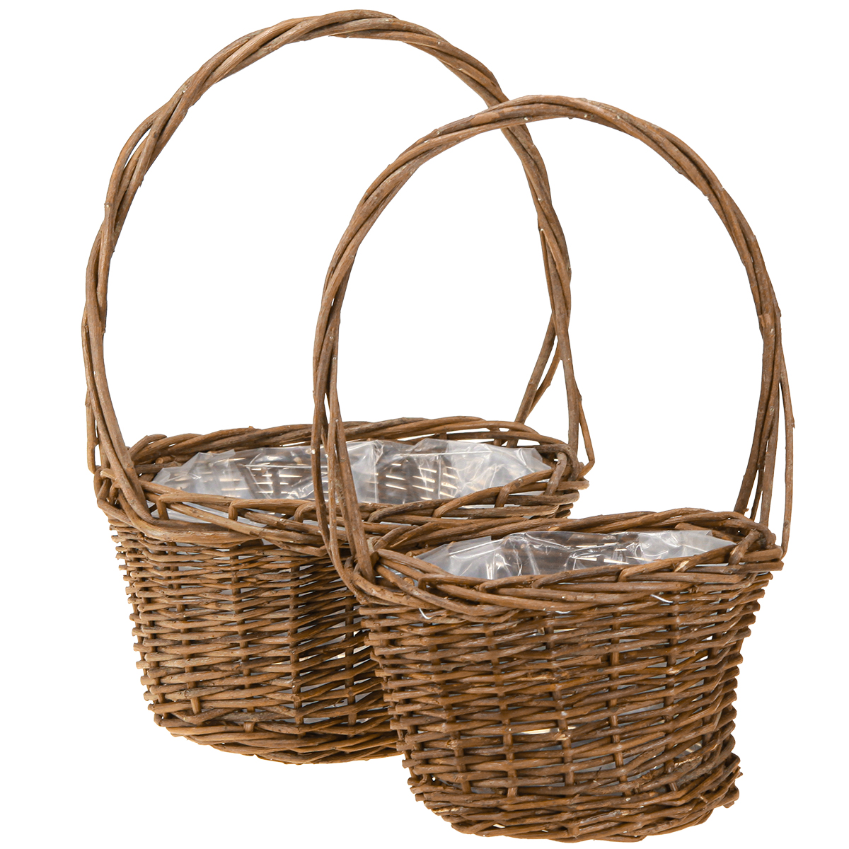 Pflanzkorb mit Henkel oval Weide Braun 28/24cm 2er-Set