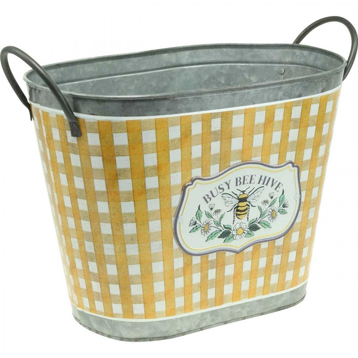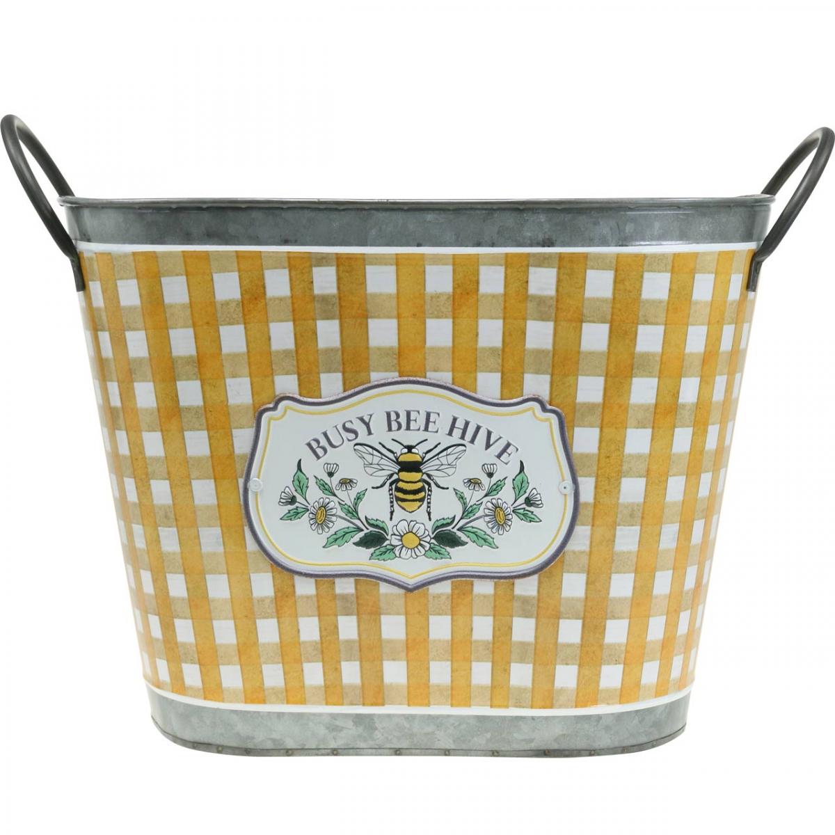 Produktname: Pflanzkübel oval Biene kariert Sommerdeko Übertopf 38×24×29cm