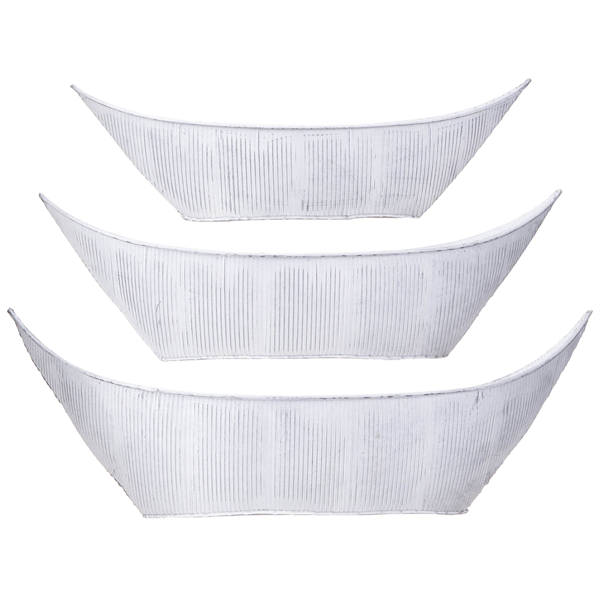 Produktname: Pflanzschale Schiffchen Metall Weiß Silber 54,5/48/42cm Set 3St