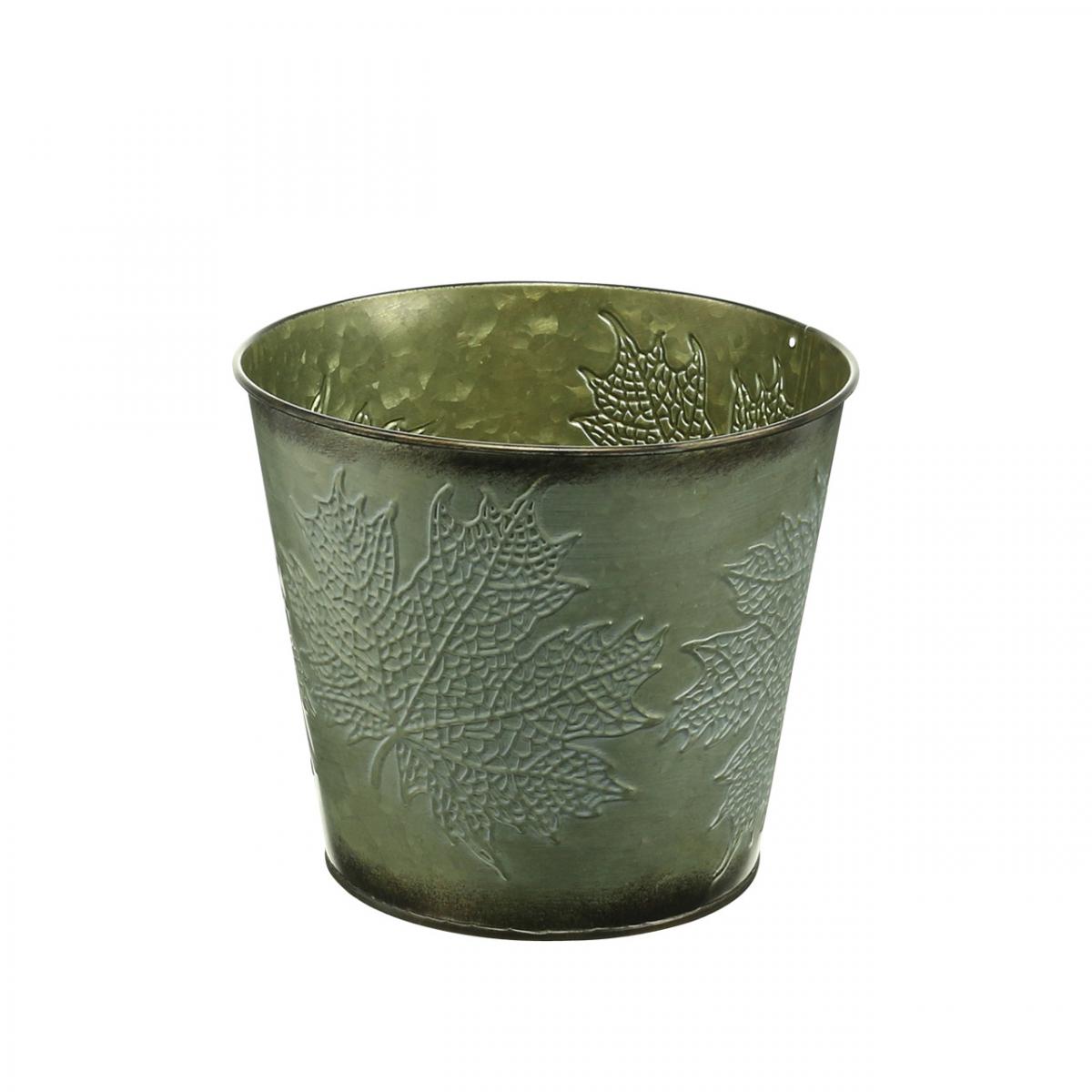 Pflanztopf mit Herbstdeko, Metalldeko, Herbstgefäß Grün Ø18,5cm H17cm