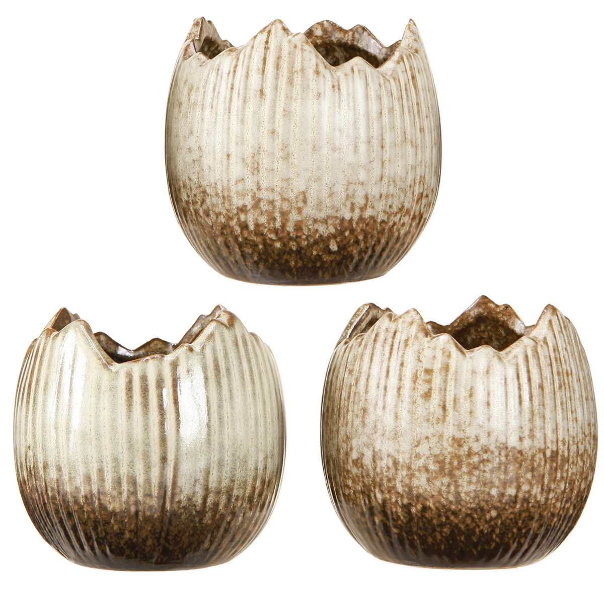 Pflanztopf Keramik Ei Zerbrochen Creme Braun Ø9,5cm 3 St