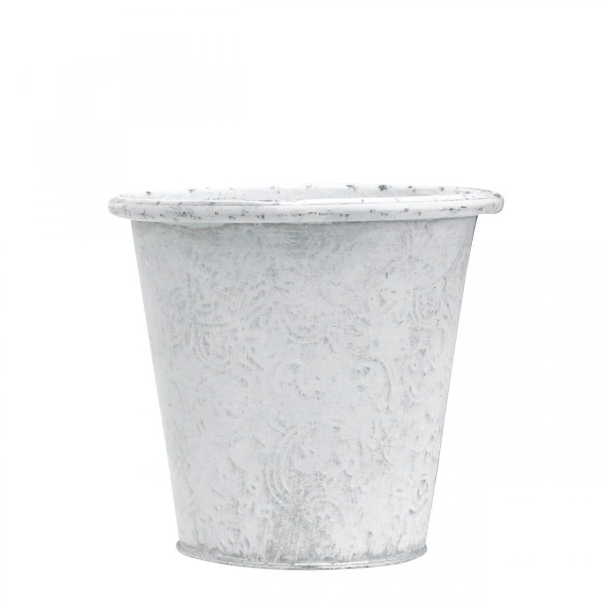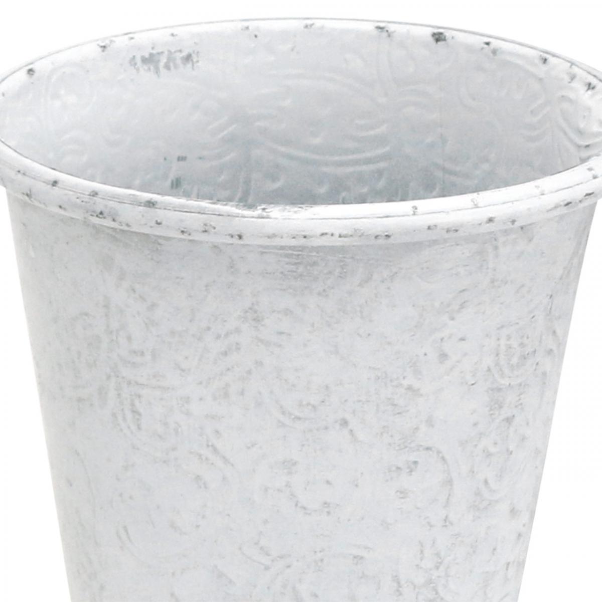 Pflanztopf mit Ornamenten, Übertopf, Metallgefäß Weiß Ø15,5cm H14,5cm