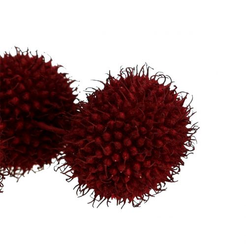 Sie erhalten die getrockneten Platanen-Früchte in Dunkelrot im praktischen Kunststoff-Beutel zu je 250 Gramm. Er enthält etwa 18 Zweige mit jeweils 3 bis 5 Früchten. Während der Durchmesser der Früchte etwa 2 Zentimeter beträgt, sind die Zweige zwischen circa 10 Zentimetern und circa 15 Zentimetern lang.