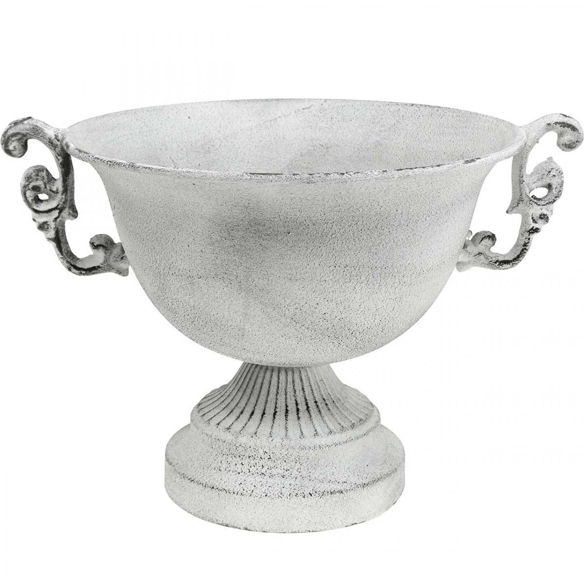 Deko Pokal Schale Antik Metallpokal Weiß Ø20cm H15cm