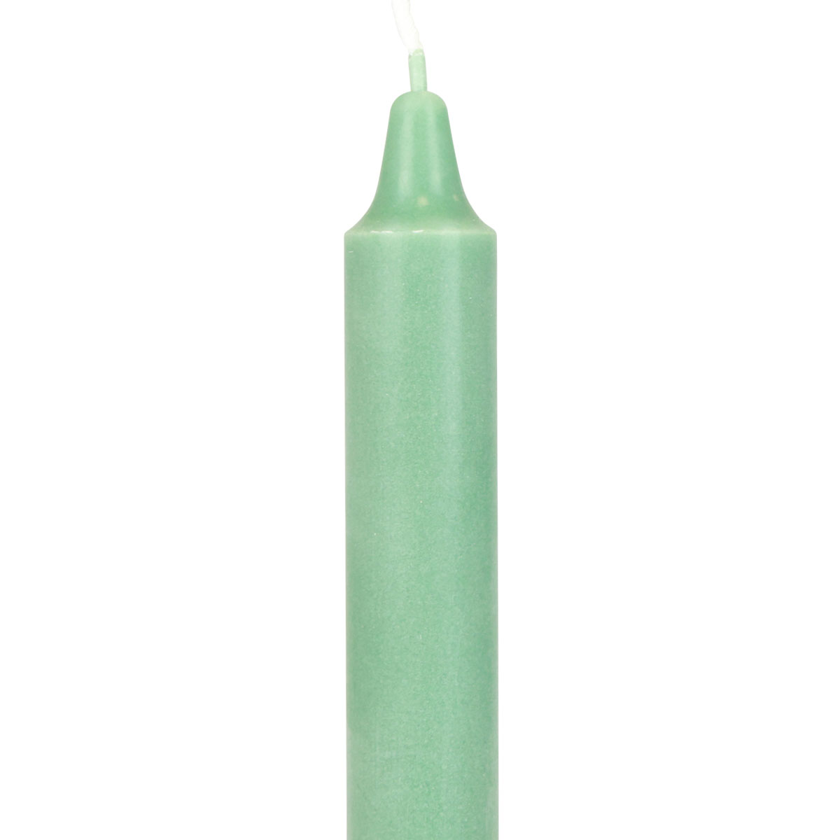 Sie erhalten 4 Stabkerzen in Grün aus PURE Naturwachsen von Wenzel Kerzen.