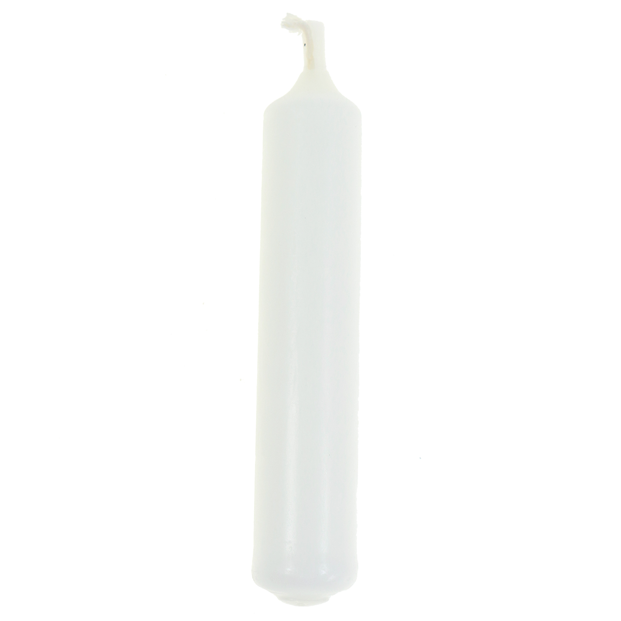 Die Pyramidenkerzen in Weiß für kleine Pyramiden haben eine Größe von rund 6,5 Zentimetern, bei einem Durchmesser von circa 1,5 Zentimetern. Unten sind die weißen Kerzen abgerundet, so dass der Durchmesser sich am Ende der Kerze auf etwa 1,2 Zentimeter reduziert.