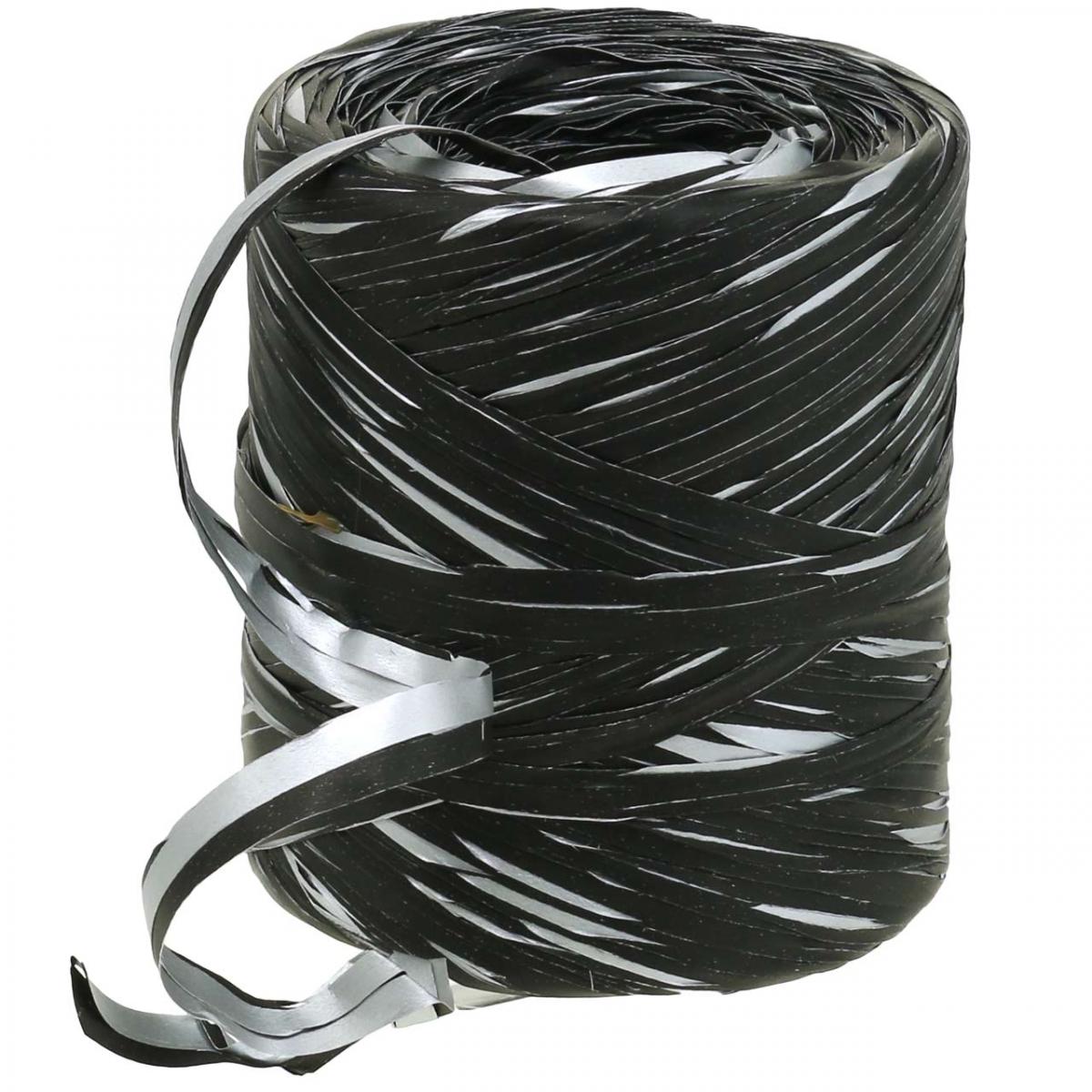 Produktname: Raffia Band Schwarz Silber Geschenkband Dekoband 200m