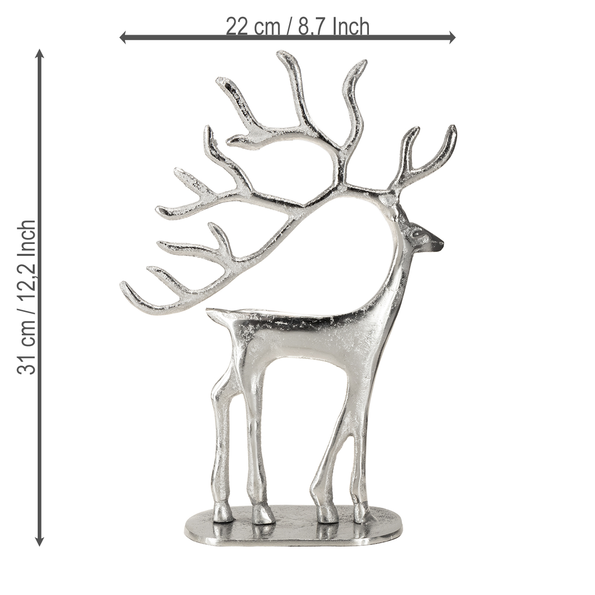 Produktname: Rentier Deko Hirsch Figur Metall Silber H31cm