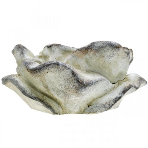 Diese Rosenblüte zum Bepflanzen eignet sich ganz wunderbar als Element in der Gartendeko oder auch für eine würdevolle Trauerfloristik. Die Steinrose ist eine Betondeko in typischem Grau und sehr realistisch gestaltet. Die Ränder der Rose aus Beton sind Violett abgedunkelt und besitzen auf der Oberseite unregelmäßige Akzente in Apricot. – Dieses Farbspiel verleiht der Steinblüte eine rustikale Optik im angesagten Vintagestil.In der Mitte besitzt die Rosenblüte aus Beton eine große Aussparung, welche mit Pflanzen jeder Art besetzt werden kann. Auch als steinerner Übertopf kann die Rosenblüte dienen. Für Feierlichkeiten kann auch etwas Steckmasse in die Rosendeko eingesetzt werden, um darin kleine Gestecke als Tischdeko für eine Hochzeit oder andere festliche Anlässe darin zu gestalten. – So eignet sich eine gefüllte Pflanzrose als Symbol der Liebe ebenso zum Valentinstag oder Muttertag.