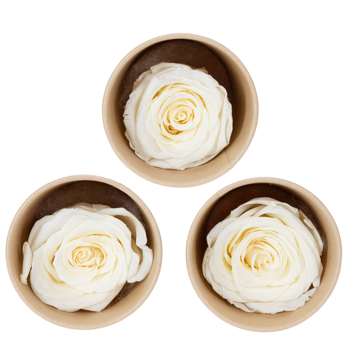 Diese weißen konservierten Rosenköpfe vereinen Ästhetik und Langlebigkeit auf harmonische Weise. Mit einem Durchmesser von circa 4 Zentimetern und einer Höhe von 5 Zentimetern passen sie wunderbar in verschiedenste Dekorationsstile. Ihr edles Weiß fügt sich nahtlos in romantische Settings ein, sei es im Vintage-Look, im Landhausstil oder ganz modern-minimalistisch. Die Rosenköpfe wurden mit viel Sorgfalt konserviert, um ihre Form, Farbe und Struktur über lange Zeit zu bewahren.