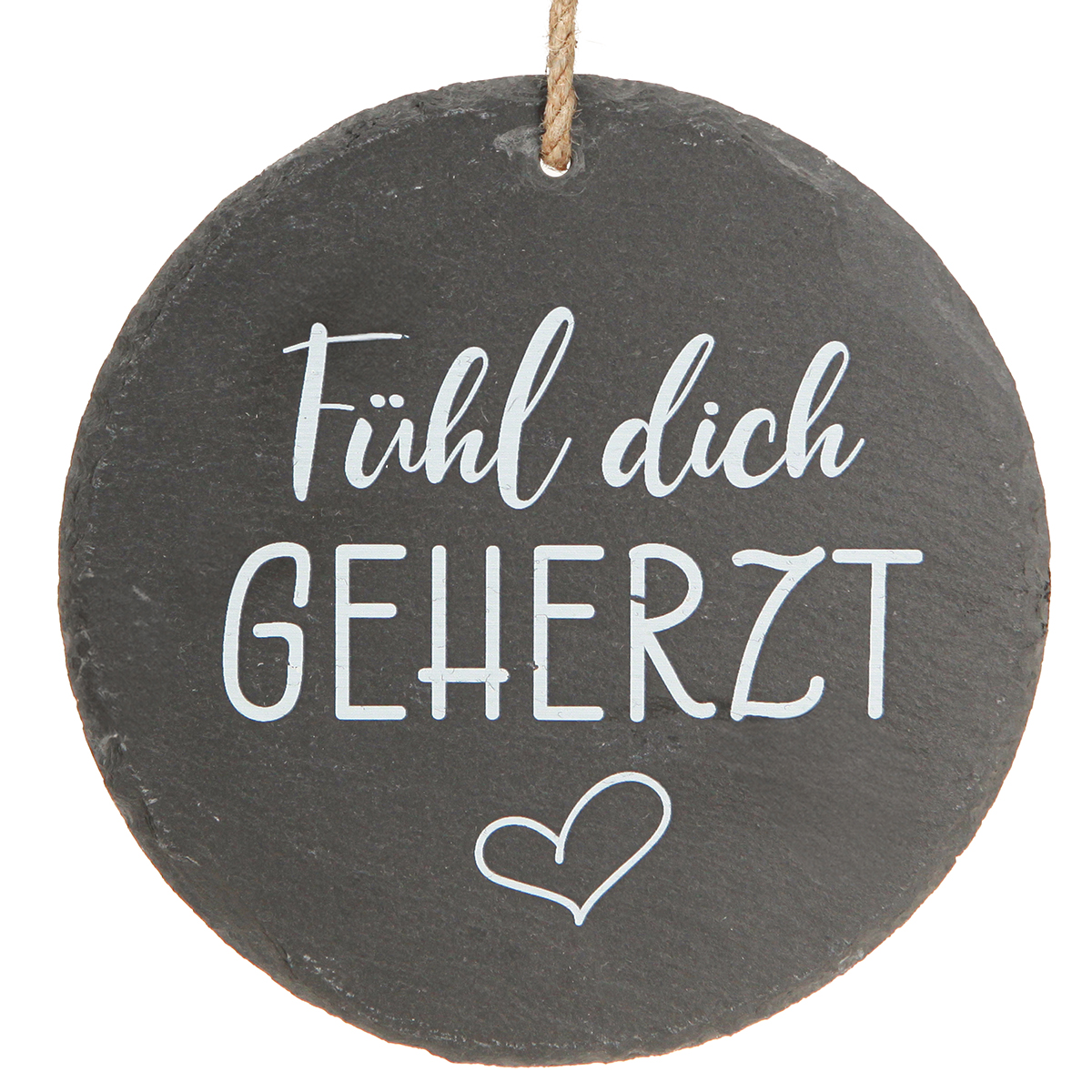 Schieferplatten Deko Rund Hängen Fühl dich geherzt Ø20cm