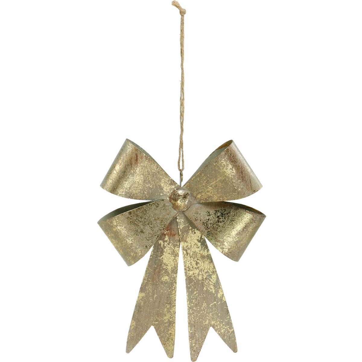 Produktname: Schleifen aus Metall, Weihnachtsanhänger, Adventsdeko Golden, Antik-Optik H18cm B12,5cm 2St