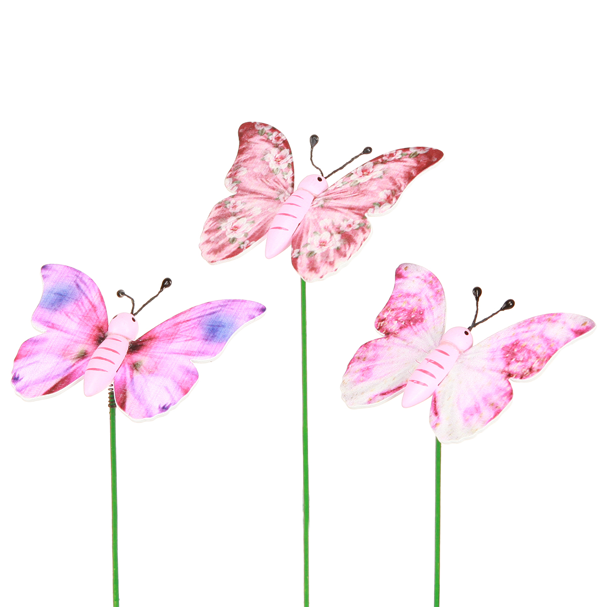 Schmetterling Deko Stecker Holz Rosa Pink 8x5,5cm 18 St