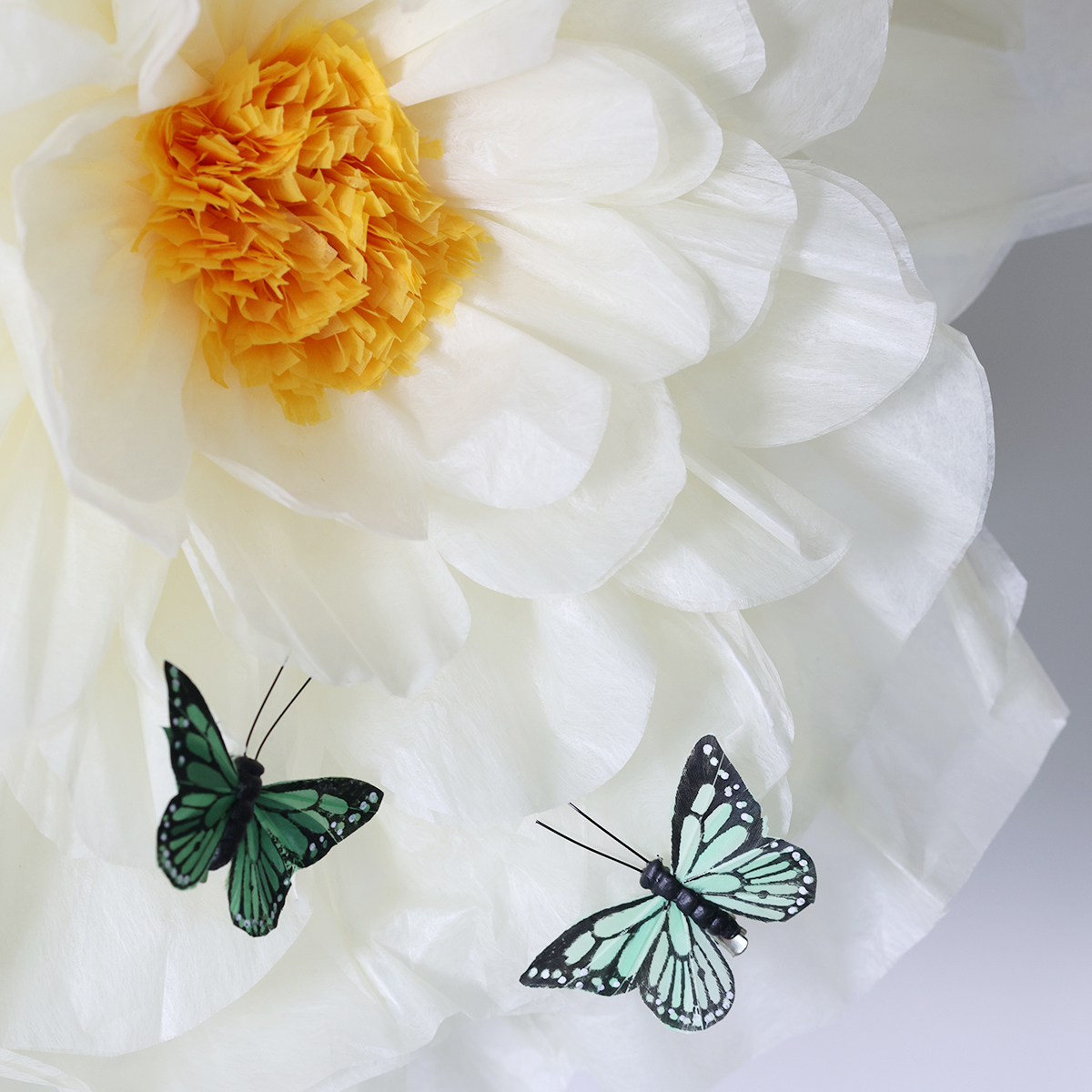 - Kombinieren Sie die Schmetterlinge mit saisonaler Floristik für ein individuelles Arrangement.