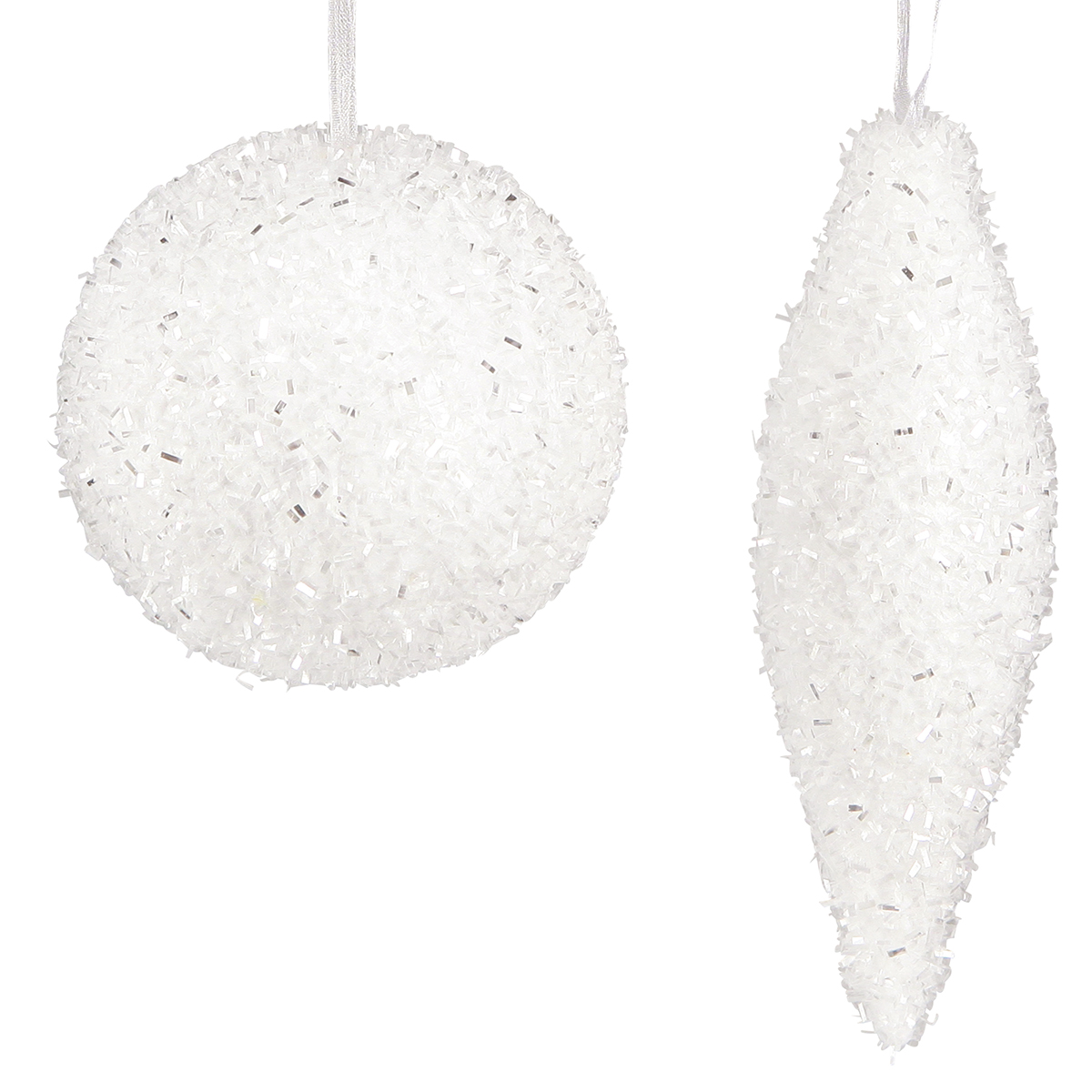 Entdecken Sie die Eleganz der Winterzeit mit unseren Schnee-Deko-Weihnachtsschmuck mit Weihnachtskugeln in Form von Schneebällen und Zapfen in Form von verschneiten Eiszapfen. Ob als stilvolle Fensterdekoration zur Weihnachtszeit oder als festlicher Baumschmuck im Winter – diese weiße Weihnachtsdeko bringt den Zauber verschneiter Landschaften in Ihr Heim.
