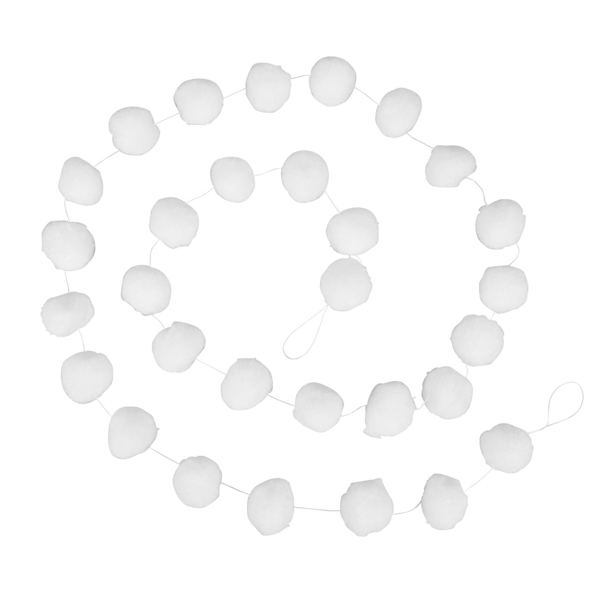 Die Deko-Schneeballgirlande ist etwa 185 Zentimeter lang und die einzelnen Bällchen haben eine Durchmesser von ungefähr 3,5 Zentimetern.
