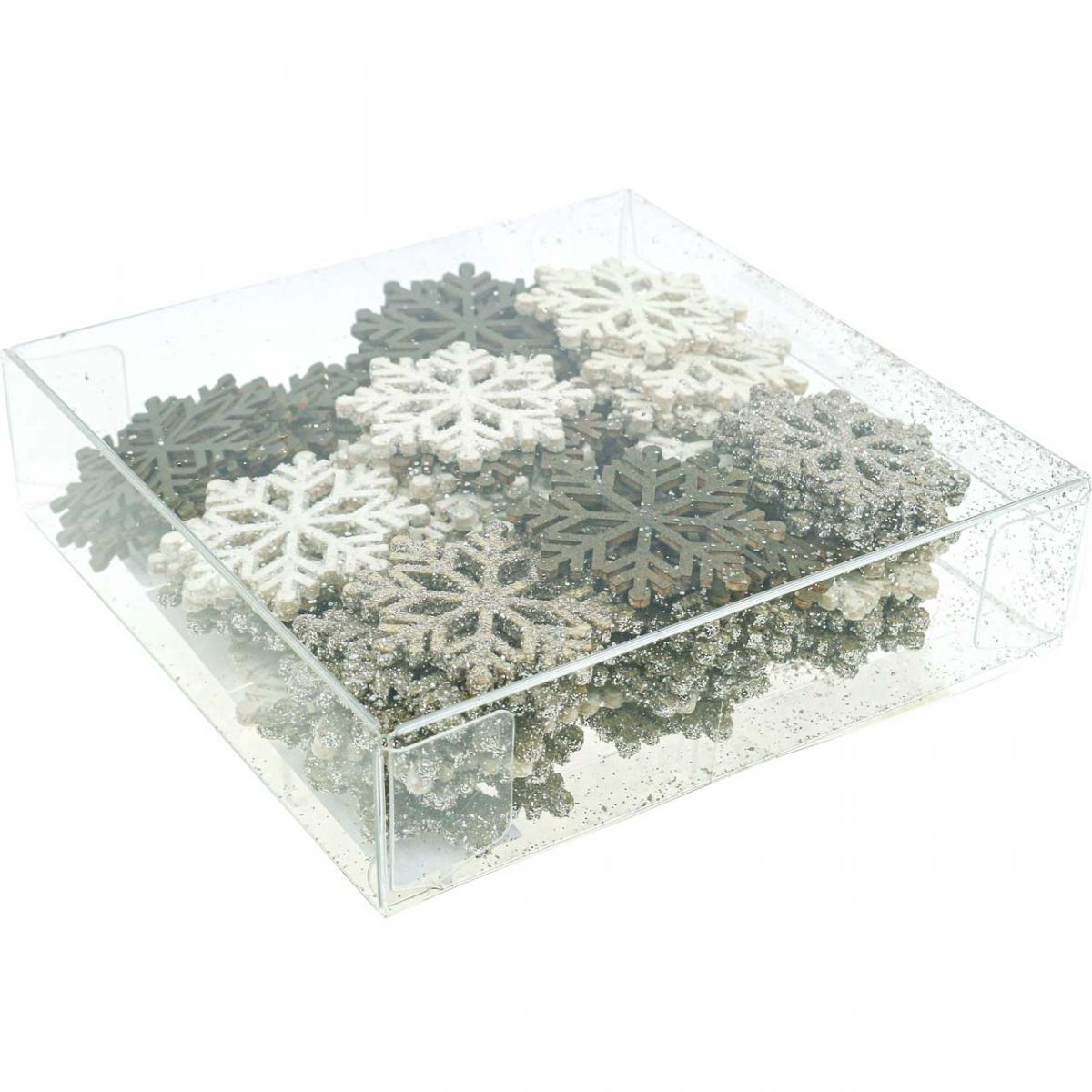 Schneeflocke Natur, Weiß Glimmer Mix Ø4cm 72 St