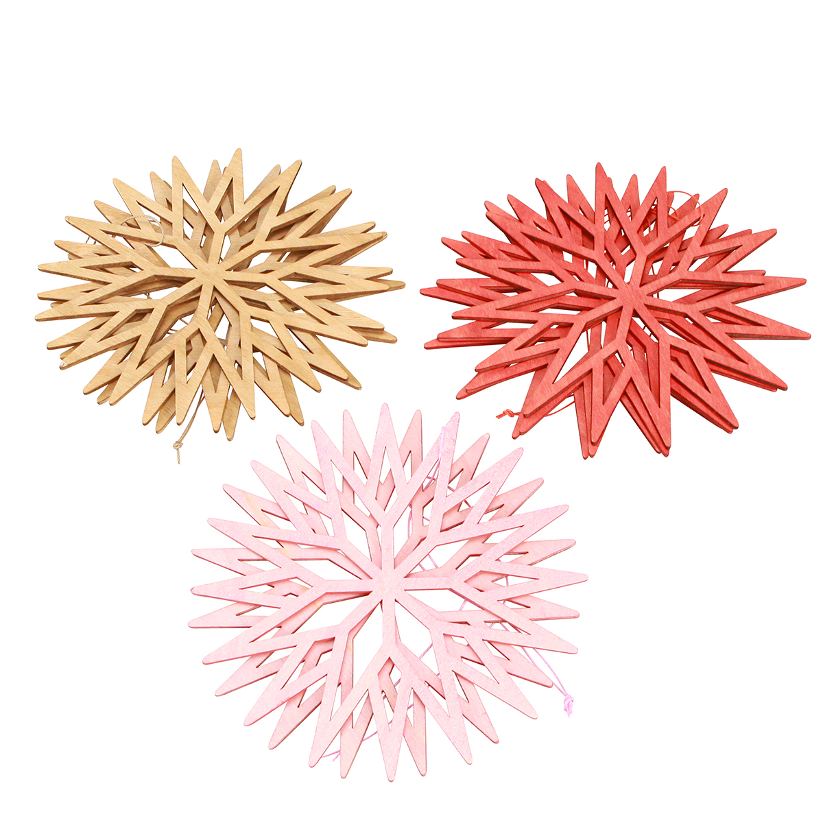 Verleihen Sie Ihrem Weihnachtsbaum einen besonderen Touch mit unseren Schneeflocken aus Holz. Die 15cm großen Dekohänger in warmem Orange, Natur und Rosa sind der ideale Baumschmuck für ein modernes Weihnachtserlebnis. Lassen Sie sich von der Kombination aus skandinavischer Klarheit und charmantem Shabby-Chic verzaubern. Perfekt für alle, die ihren Weihnachtsbaum auf eine stilvolle und kreative Weise schmücken möchten.