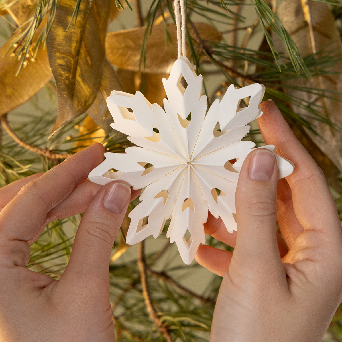 Sind Sie bereit für eine stimmungsvolle Winterzeit, die einfach verzaubert? Diese Schneeflocken-Deko zum Hängen bringt eine subtil-elegante Note in Ihr Zuhause. Ob an Fenstern, über der Festtafel oder im Wohnzimmer – die hängenden Papier-Schneeflocken schaffen eine zauberhafte Winteratmosphäre, die direkt aus einem Märchen stammen könnte.