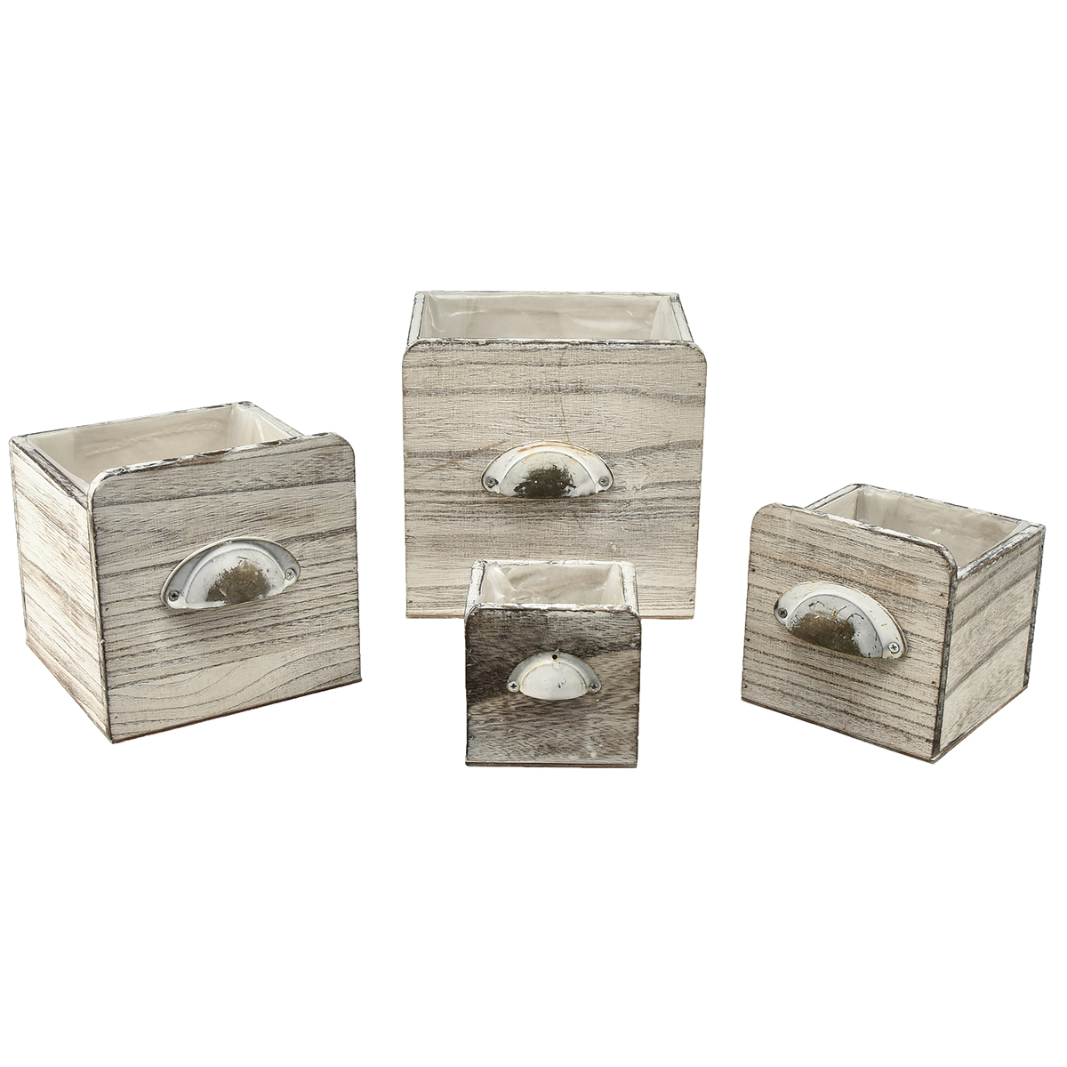 Die kleinen Holz Schubladenboxen sind vielseitig einsetzbar und speziell gefertigt, um Ihre Kreativität und Ordnung zu unterstützen. Jede Box ist mit einer speziellen Folie für direkte Bepflanzung ausgestattet, diese macht sie zum idealen Gefährten für Floristen und anspruchsvolle Pflanzenfreunde. Das Vintage Design macht jedes Stück zu einem Unikat und fügt sich harmonisch in jedes Ambiente ein.