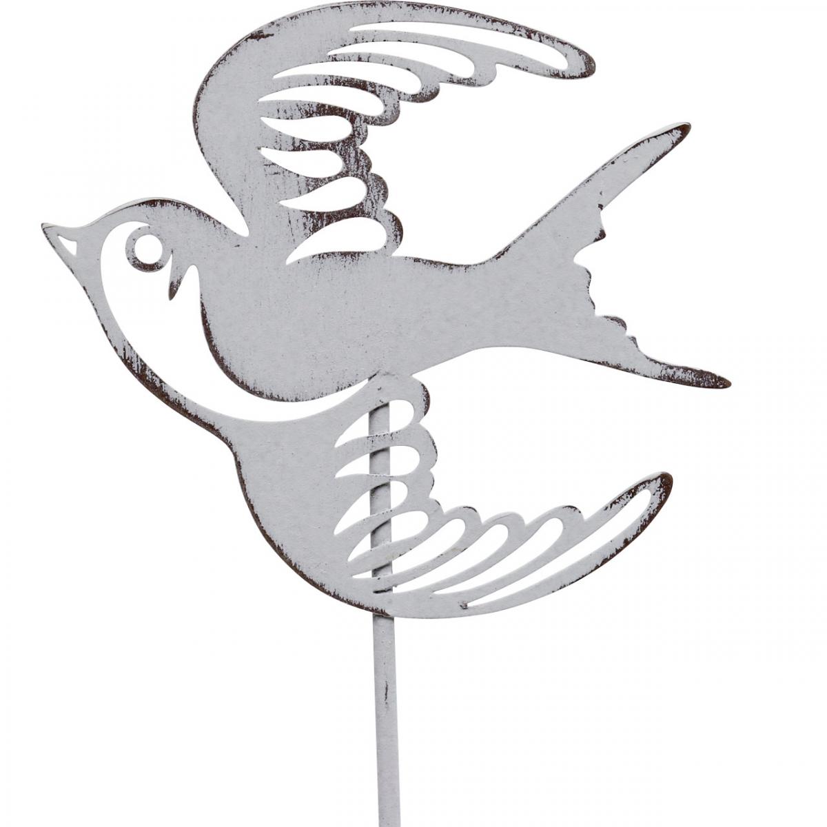 Schwalbendeko, Wandschmuck aus Metall, Vögel zum Hängen Weiß, Silbern Shabby Chic H47,5cm