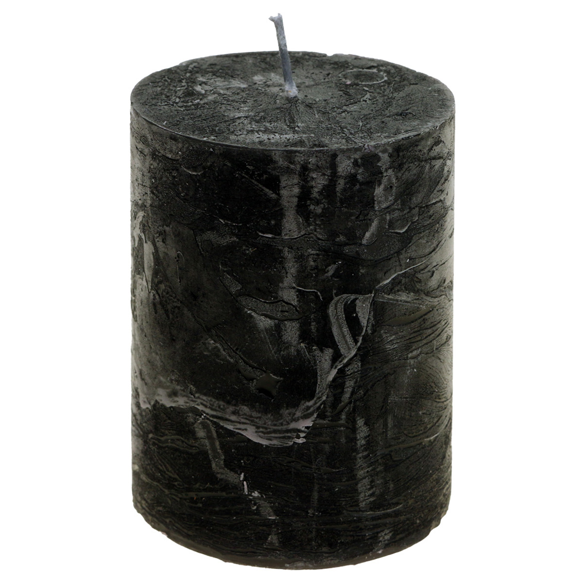 Produktname: Schwarze Stumpenkerzen durchgefärbt 85x120mm Set 2 Stück Rustikale Tischdeko