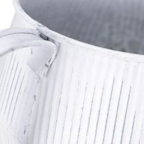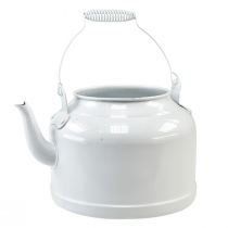 Charmante Deko-Teekanne in Weiß, Metall Übertopf im Landhausstil, Vintage Pflanzgefäß 27x20,5cm