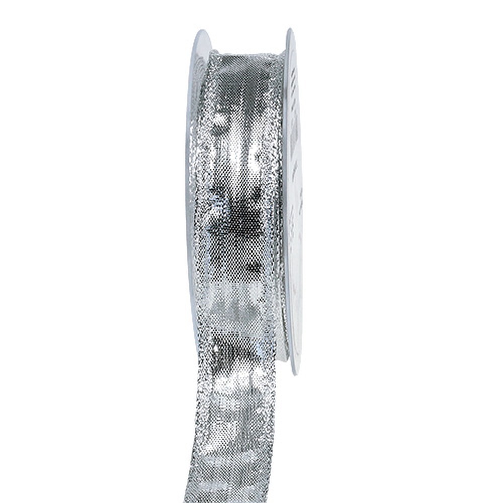 Produktname: Dekoband Silber mit Drahtkante 25mm 25m