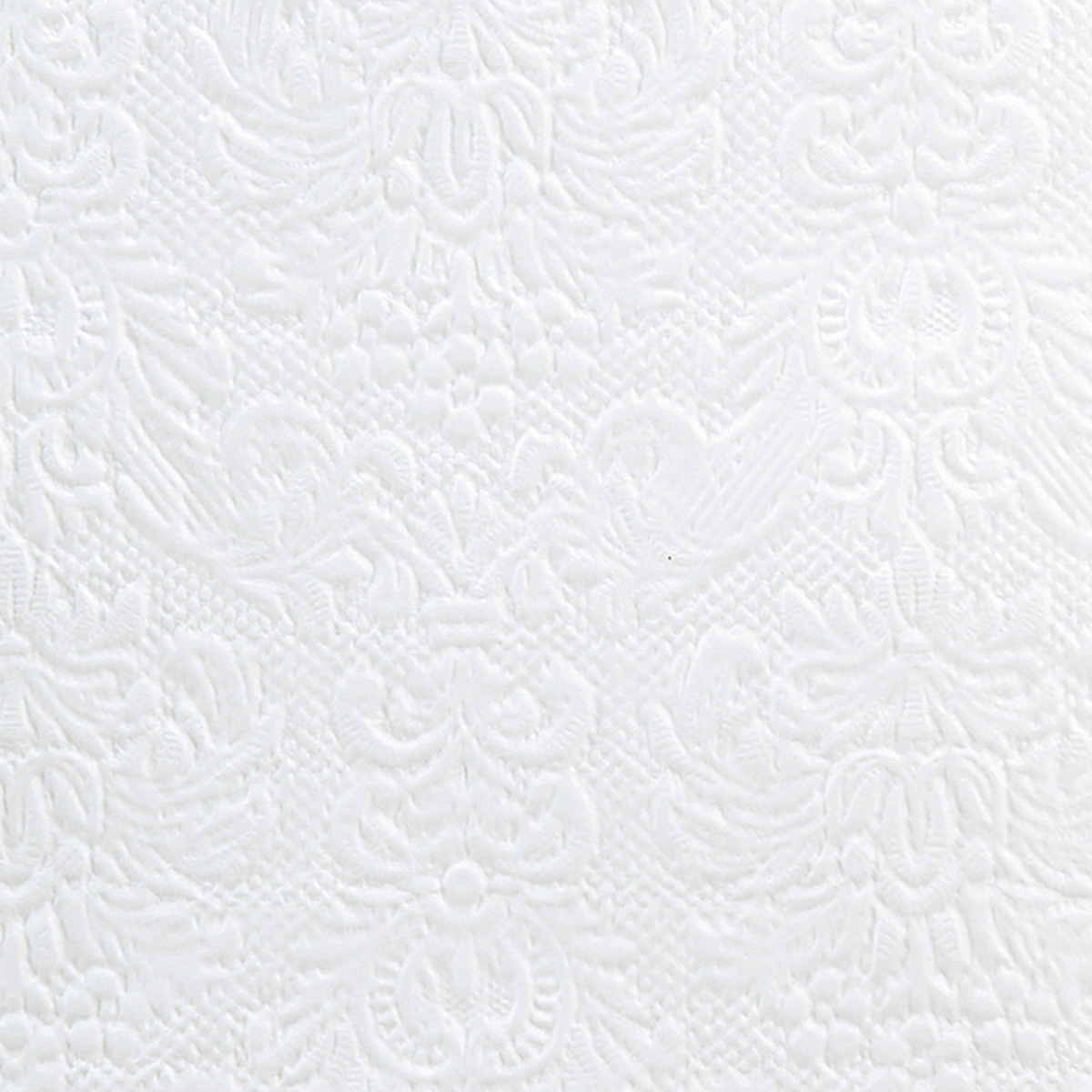Weiße Servietten lassen sich vielseitig kombinieren.Durch die Ornament-Prägung schwingt ein Hauch Nostalgie mit.