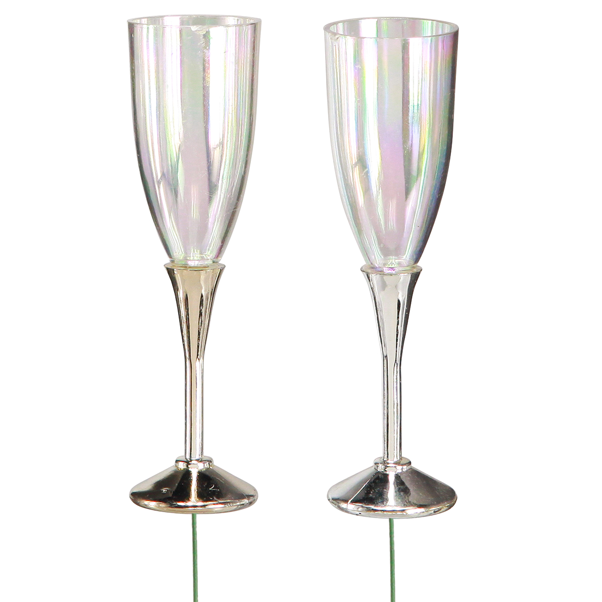 Silvesterdeko zum Stecken Sektglas am Draht H9,5cm 8 St