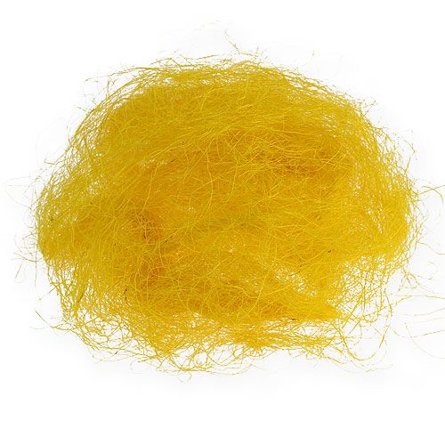 Ob für ein aufsehenerregendes Osternest oder für eine Frühlingsdekoration – dieser Sisal in Gelb lässt sich flexibel für eine Vielzahl an Dekorationen einsetzen! Die Sisal-Wolle wird aus der Sisal-Agave gewonnen und ist sowohl besonders strapazierfähig als auch sehr einfach zu verarbeiten. Die dünne Faser kann dann beispielsweise wie Wolle als Bett für eine Osterdekoration beziehungsweise für Ostereier angerichtet werden. Sie dient aber auch als Zierde für anspruchsvolle Frühlingsgestecke und kann dort um eine Kranzunterlage gewickelt werden.Oder Sie drehen aus dem Sisal kleine Kordel und binden diese zu schicken Schleifen, die auch in einer Tischdekoration oder einer Raumdekoration Verwendung finden. Aber auch zum Binden von Sträußen und Geschenken macht die Sisal-Faser ein gut Figur und Geschenk-Ideen damit noch einzigartiger und schöner! Aber auch als Füllmaterial für Geschenkkörbe oder Kissen ist die weiche Faser besonders beliebt und durch die Färbung, die praktischerweise wie Eidotter aussieht, ein richtiger Hingucker!
