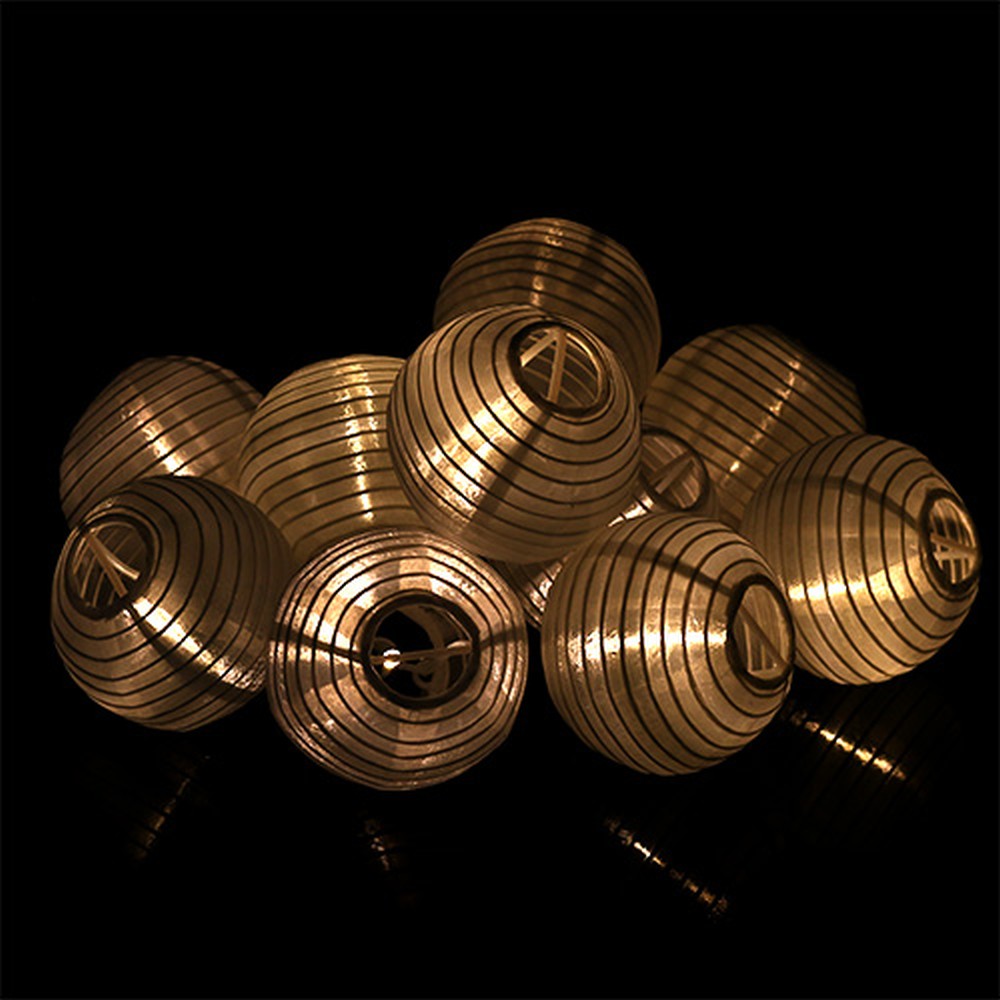 Die Solar-Lampionkette in Weiß mit 10 Birnen, die in Warmweiß leuchten, hat insgesamt eine Länge von circa 7,5 Metern. Davon fallen etwa 3 Meter auf die Zuleitung und ungefähr 4,5 Meter auf die Lichter, deren Abstand zueinander circa 50 Zentimeter beträgt, während die Lampions dabei einen Durchmesser von etwa 8 Zentimetern haben.
