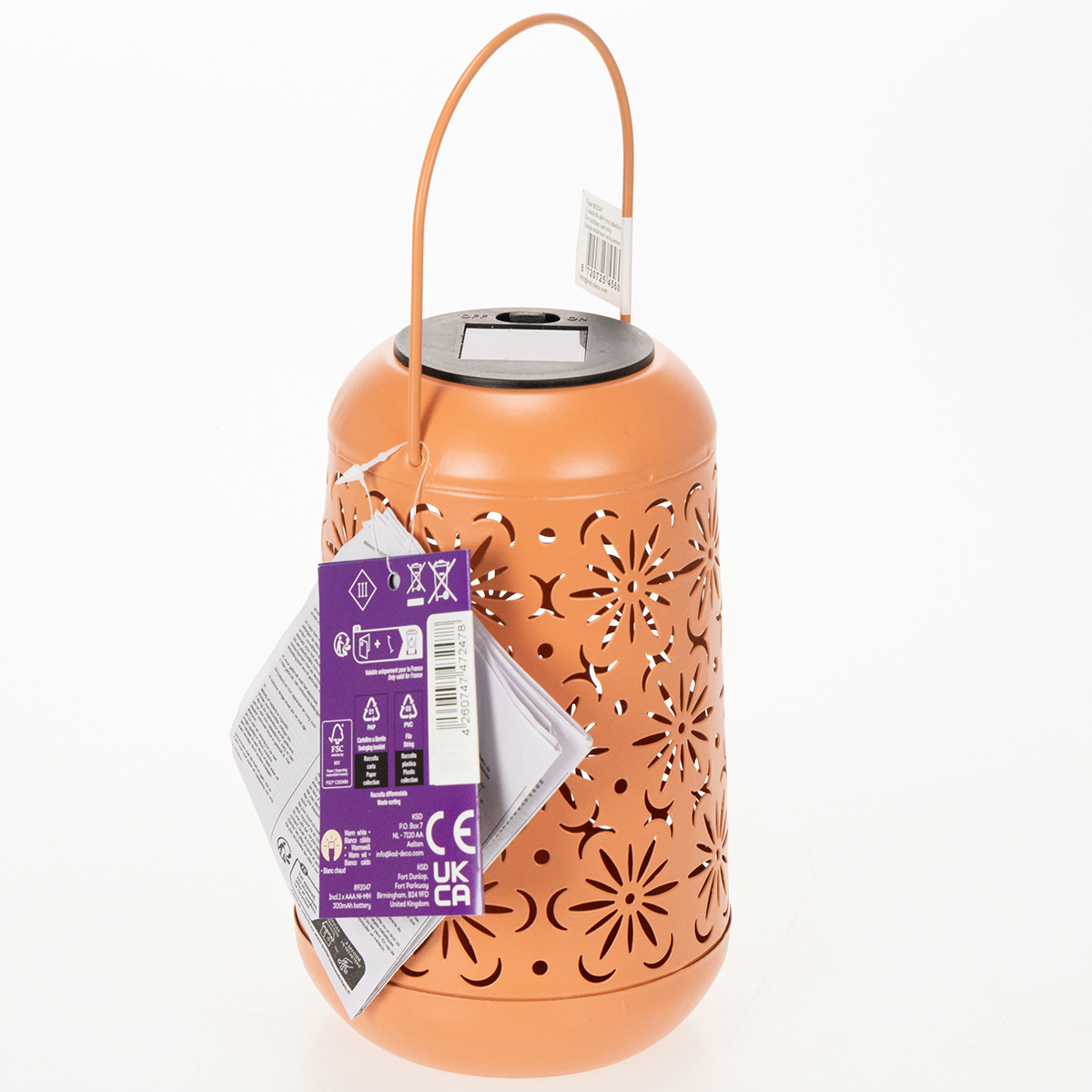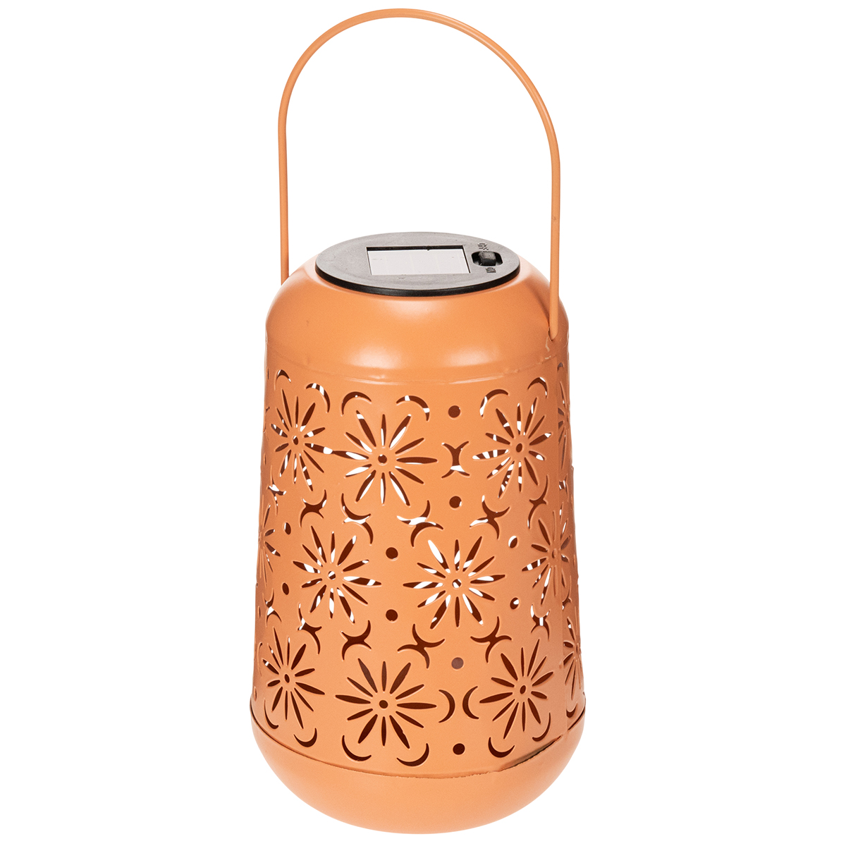 Mit ihrer warmen Lichtfarbe und dem floral verzierten Muster zaubert diese Solar-Laterne eine einladende Atmosphäre in jeden Außenbereich. Die filigranen Blumenmuster verleihen dem Garten einen Hauch von Eleganz und etwas Boho-Flair. Die hochwertige Verarbeitung in einem dezenten Orange harmoniert perfekt mit modernen wie auch klassischen Gartenstilen. Egal, ob Sie bei lauen Sommerabenden für romantische Lichtakzente sorgen möchten, die Terrasse mit stilvoller Beleuchtung schmücken oder eine dekorative Lösung für ein Gartenfest suchen – diese Outdoor-Solar-Lampe ist mehr als nur eine Lichtquelle. Sie ist ein Highlight in jedem Außenbereich.