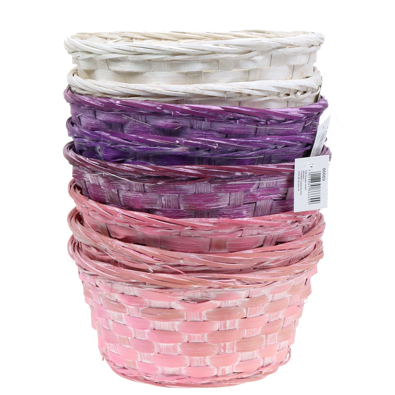 Die Pflanzschale aus geflochtenem Spanholz wird in einem Set zu insgesamt 8 Stück geliefert. An der Innenseite ist mit einer Schnur eine robuste Folie aus Kunststoff befestigt. Jeder Korb ist ungefähr 9 Zentimeter hoch und besitzt einen Durchmesser von etwa 19 Zentimetern.